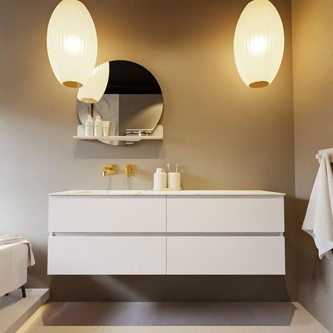 MONDIAZ VICA-DLUX Badkamermeubelset - 150cm - onderkast talc - 4 lades - inbouw wastafel cloud links - zonder kraangaten - 60cm hoge versie - frape