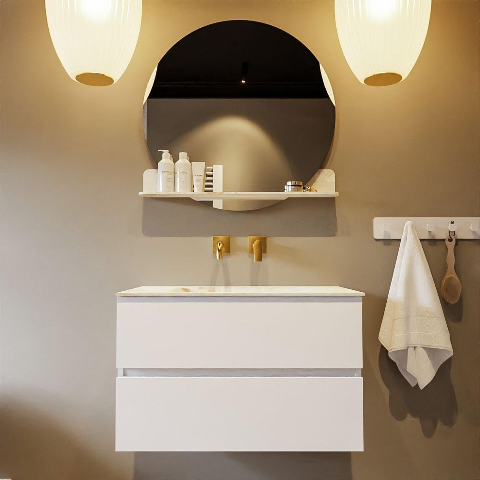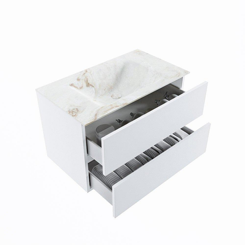 MONDIAZ VICA-DLUX Badkamermeubelset - 80cm - onderkast talc - 2 lades - inbouw wastafel cloud midden - zonder kraangaten - 60cm hoge versie - frape