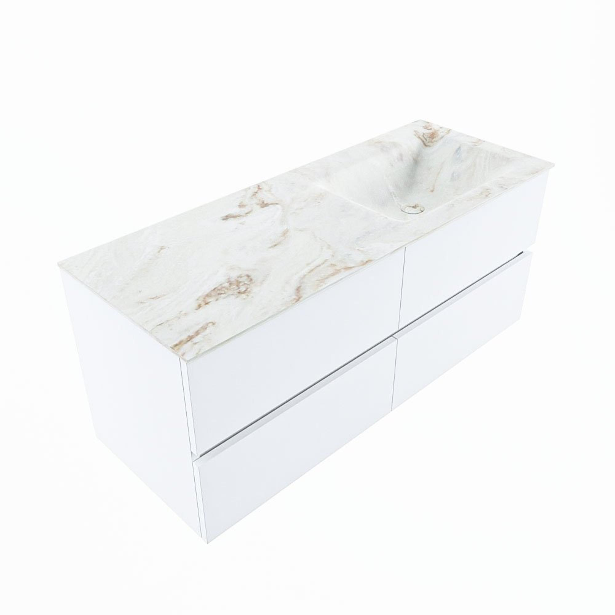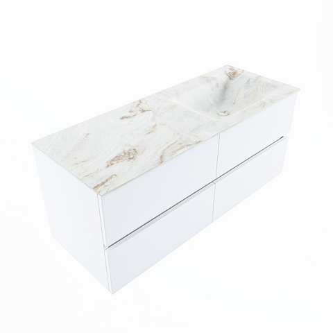 MONDIAZ VICA-DLUX Badkamermeubelset - 120cm - onderkast talc - 4 lades - inbouw wastafel cloud rechts - 1 kraangat - 60cm hoge versie - frape