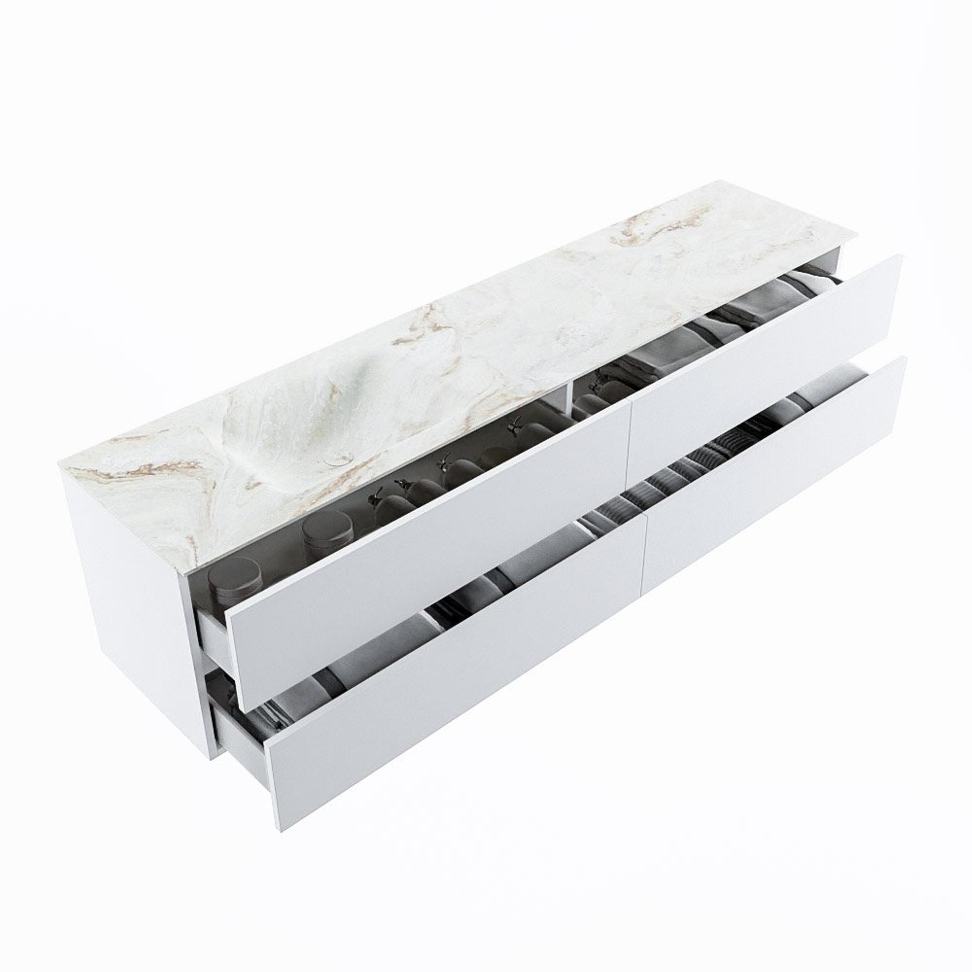 MONDIAZ VICA-DLUX Badkamermeubelset - 200cm - onderkast talc - 4 lades - inbouw wastafel cloud links - zonder kraangaten - 60cm hoge versie - frape