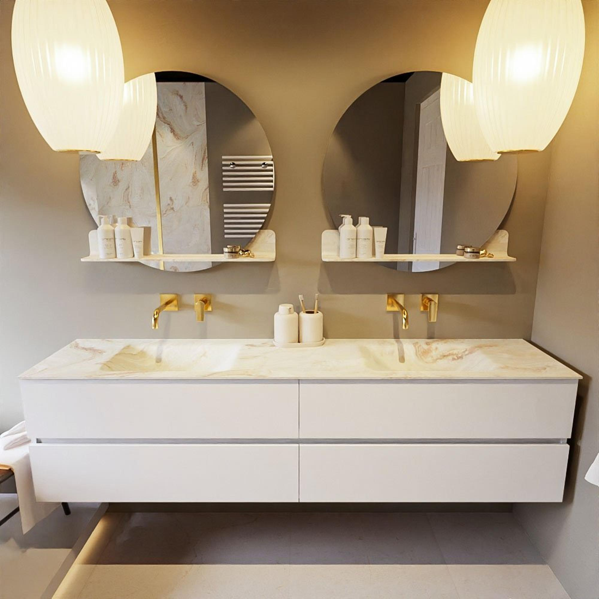 MONDIAZ VICA-DLUX Badkamermeubelset - 200cm - onderkast talc - 4 lades - inbouw wastafel cloud dubbel - zonder kraangaten - 60cm hoge versie - frape
