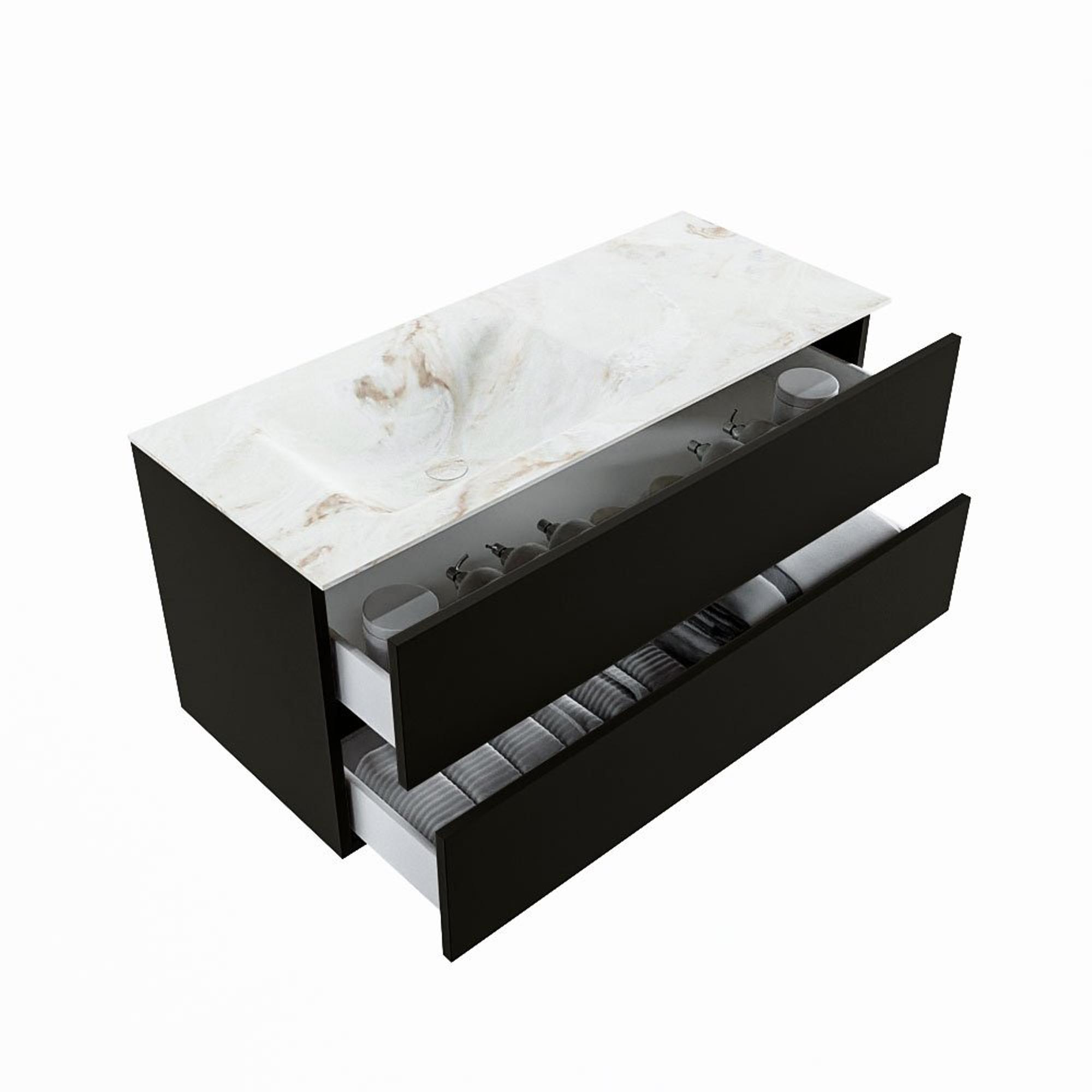 MONDIAZ VICA-DLUX Badkamermeubelset - 110cm - onderkast urban- 2 lades - inbouw wastafel cloud links - zonder kraangaten - 60cm hoge versie - frape
