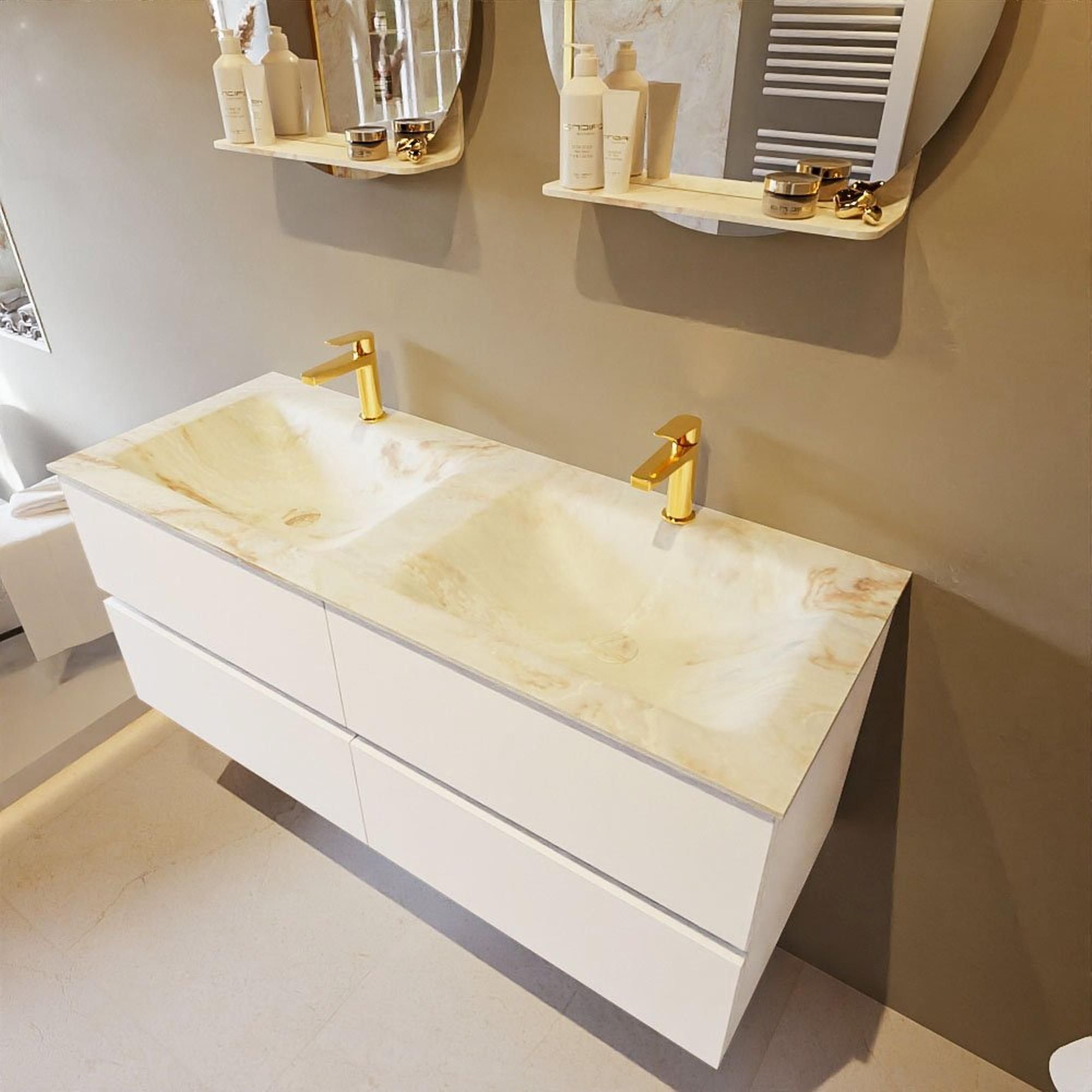 MONDIAZ VICA-DLUX Badkamermeubelset - 120cm - onderkast talc - 4 lades - inbouw wastafel cloud dubbel - 2 kraangaten - 60cm hoge versie - frape