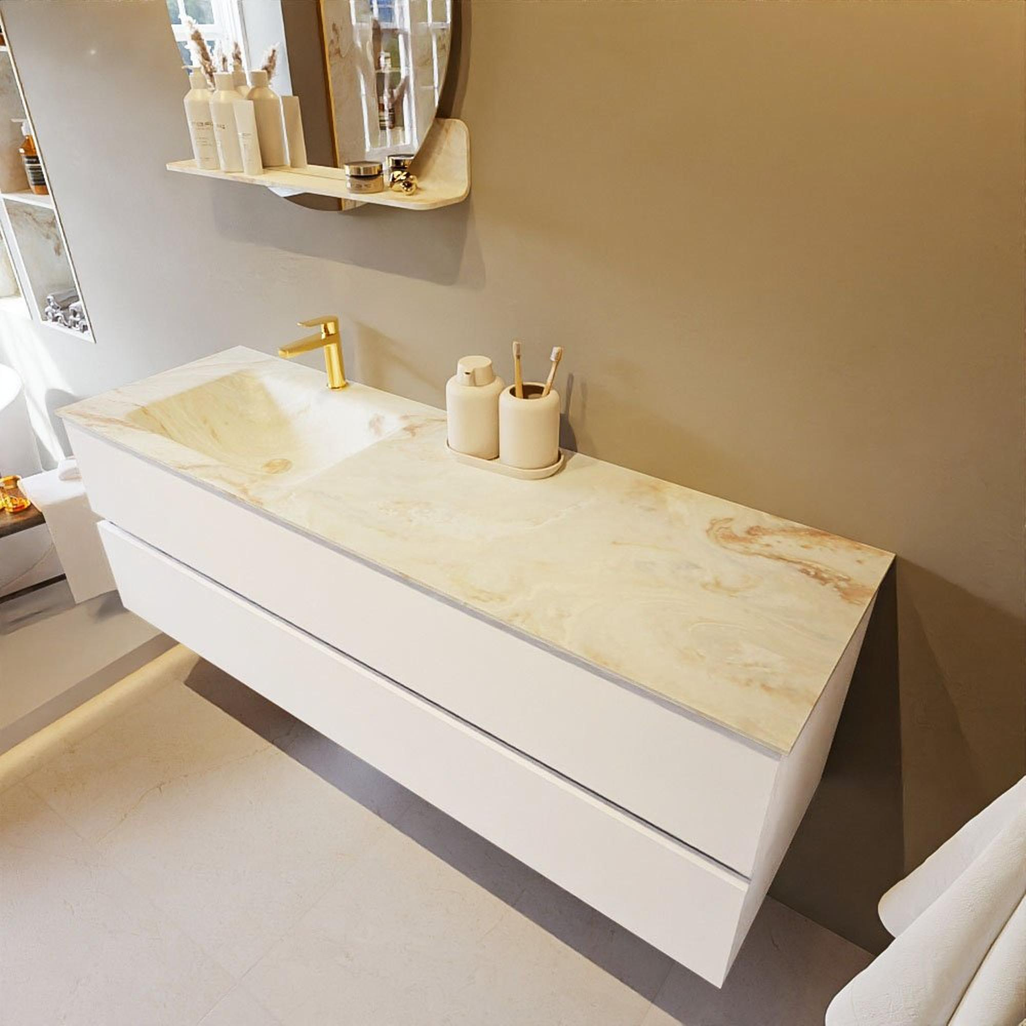 MONDIAZ VICA-DLUX Badkamermeubelset - 150cm - onderkast talc - 2 lades - inbouw wastafel cloud links - 1 kraangat - 60cm hoge versie - frape