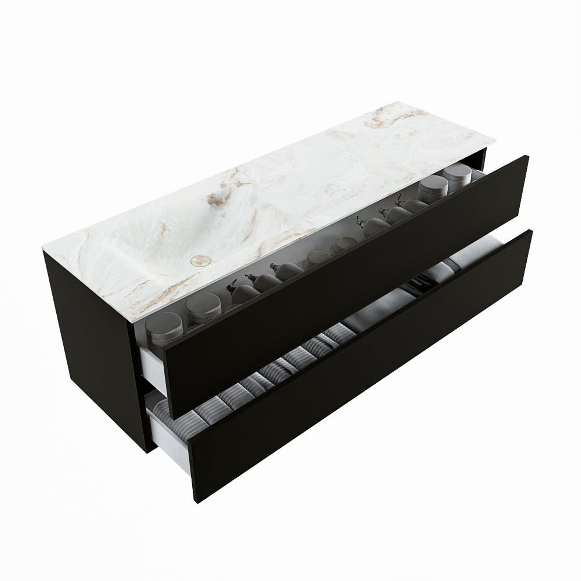 MONDIAZ VICA-DLUX Badkamermeubelset - 150cm - onderkast urban- 2 lades - inbouw wastafel cloud links - zonder kraangaten - 60cm hoge versie - frape