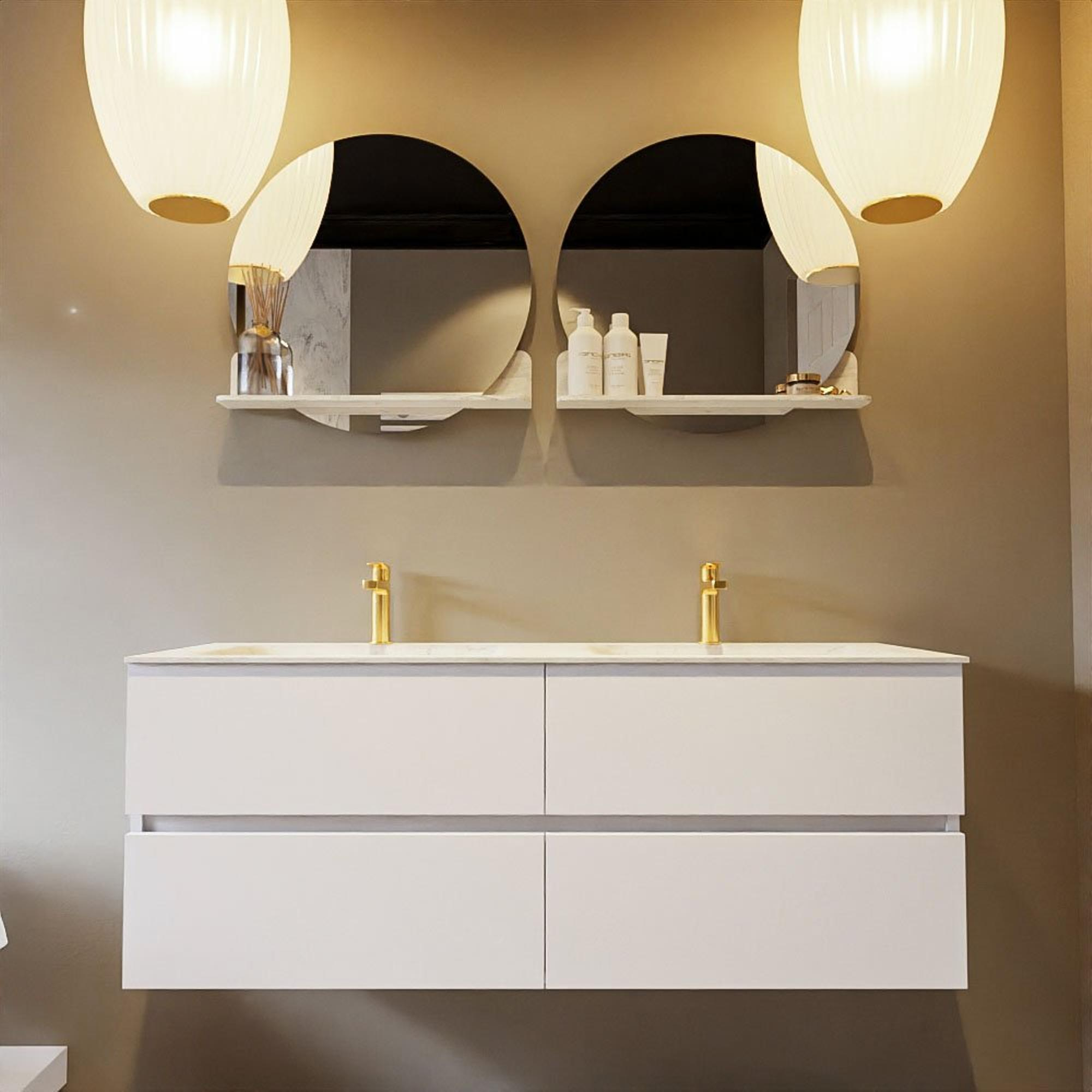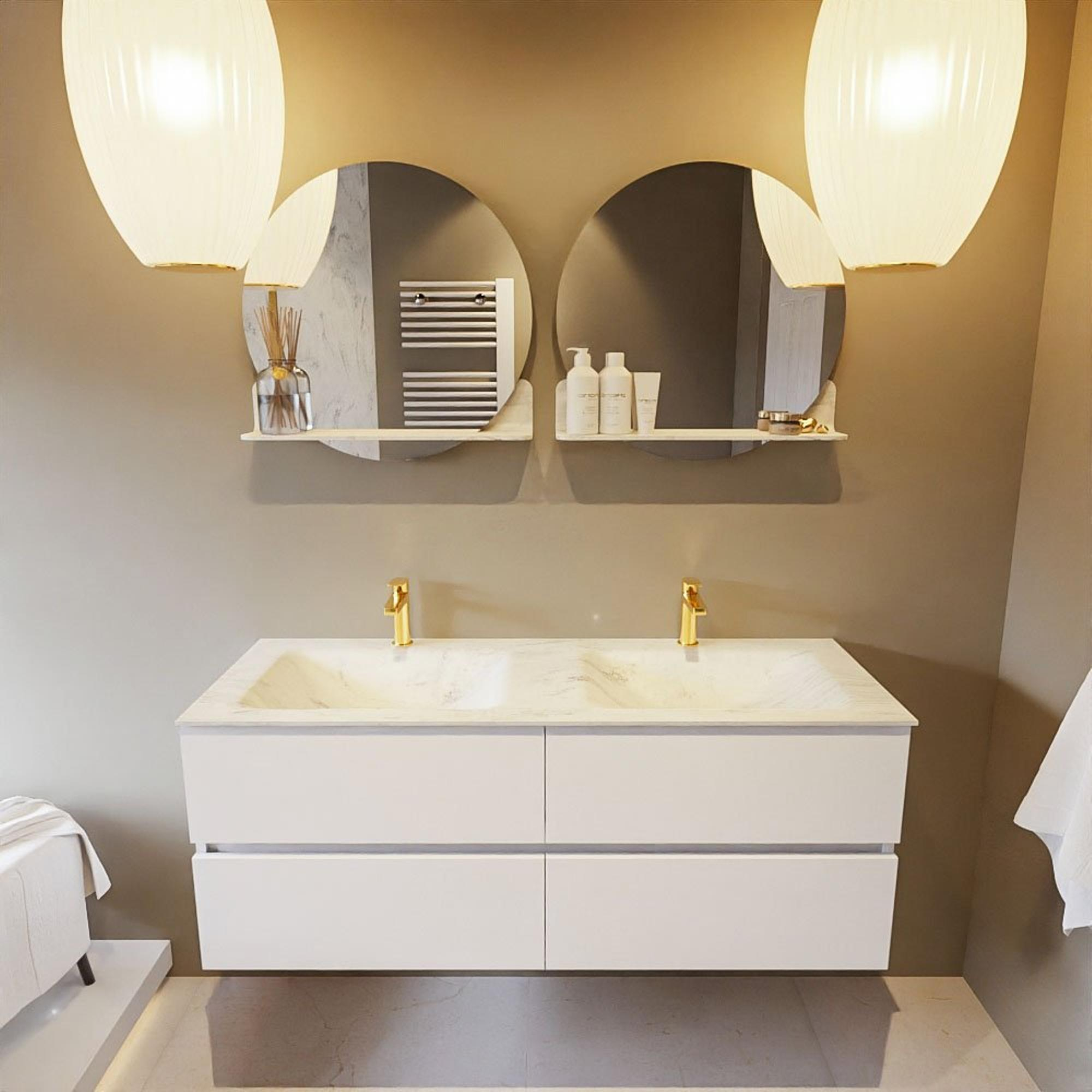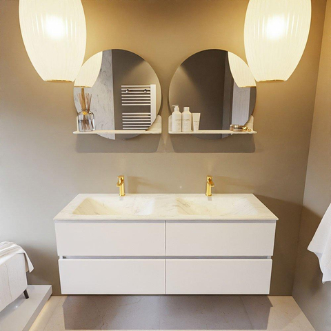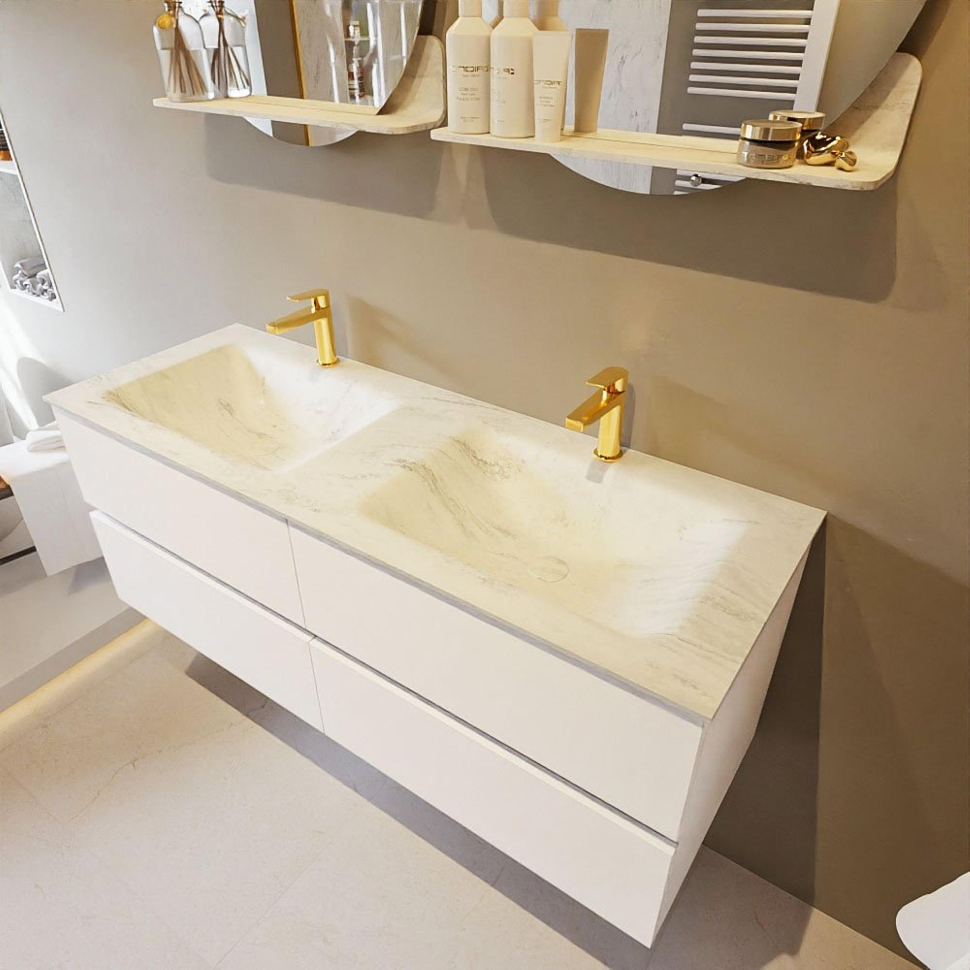 MONDIAZ VICA-DLUX Badkamermeubelset - 130cm - onderkast talc - 4 lades - inbouw wastafel cloud dubbel - 2 kraangaten - 60cm hoge versie - opalo