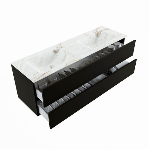 MONDIAZ VICA-DLUX Badkamermeubelset - 150cm - onderkast urban- 2 lades - inbouw wastafel cloud dubbel - 2 kraangaten - 60cm hoge versie - frape