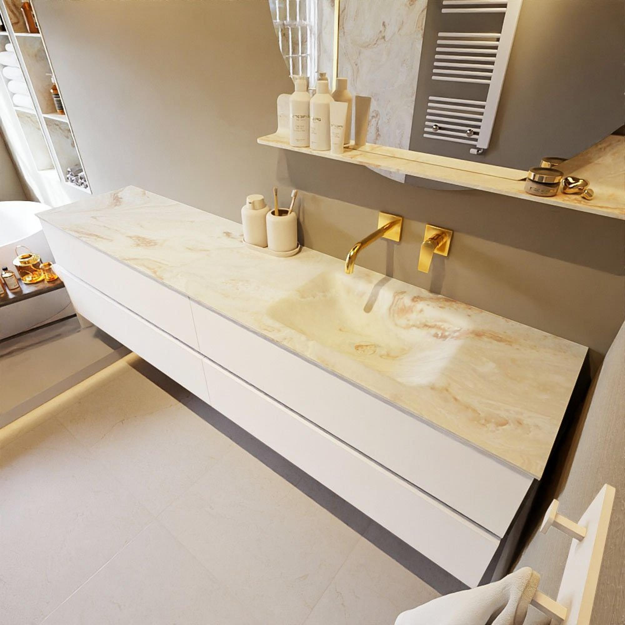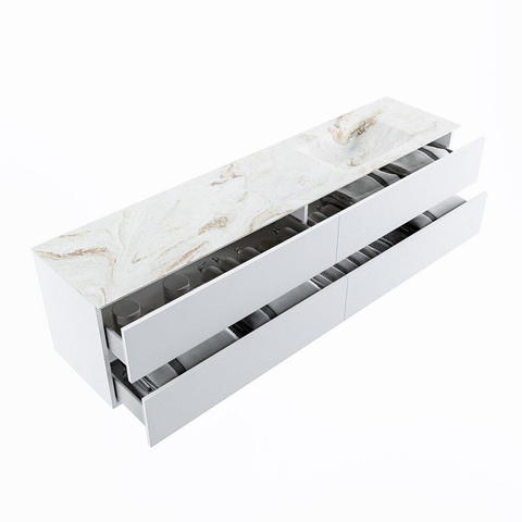 MONDIAZ VICA-DLUX Badkamermeubelset - 200cm - onderkast talc - 4 lades - inbouw wastafel cloud rechts - zonder kraangaten - 60cm hoge versie - frape