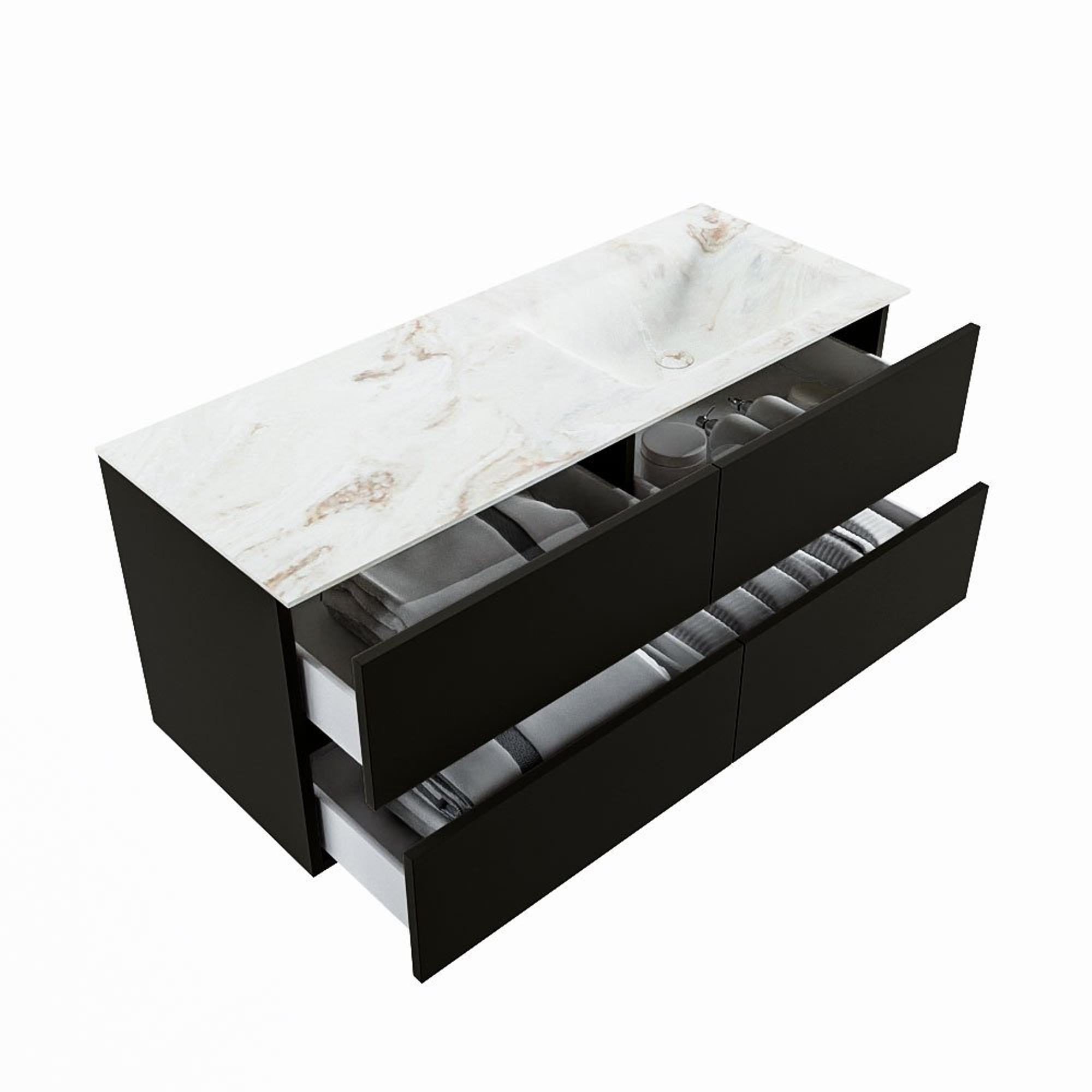 MONDIAZ VICA-DLUX Badkamermeubelset - 120cm - onderkast urban - 4 lades - inbouw wastafel cloud rechts - 1 kraangat - 60cm hoge versie - frape