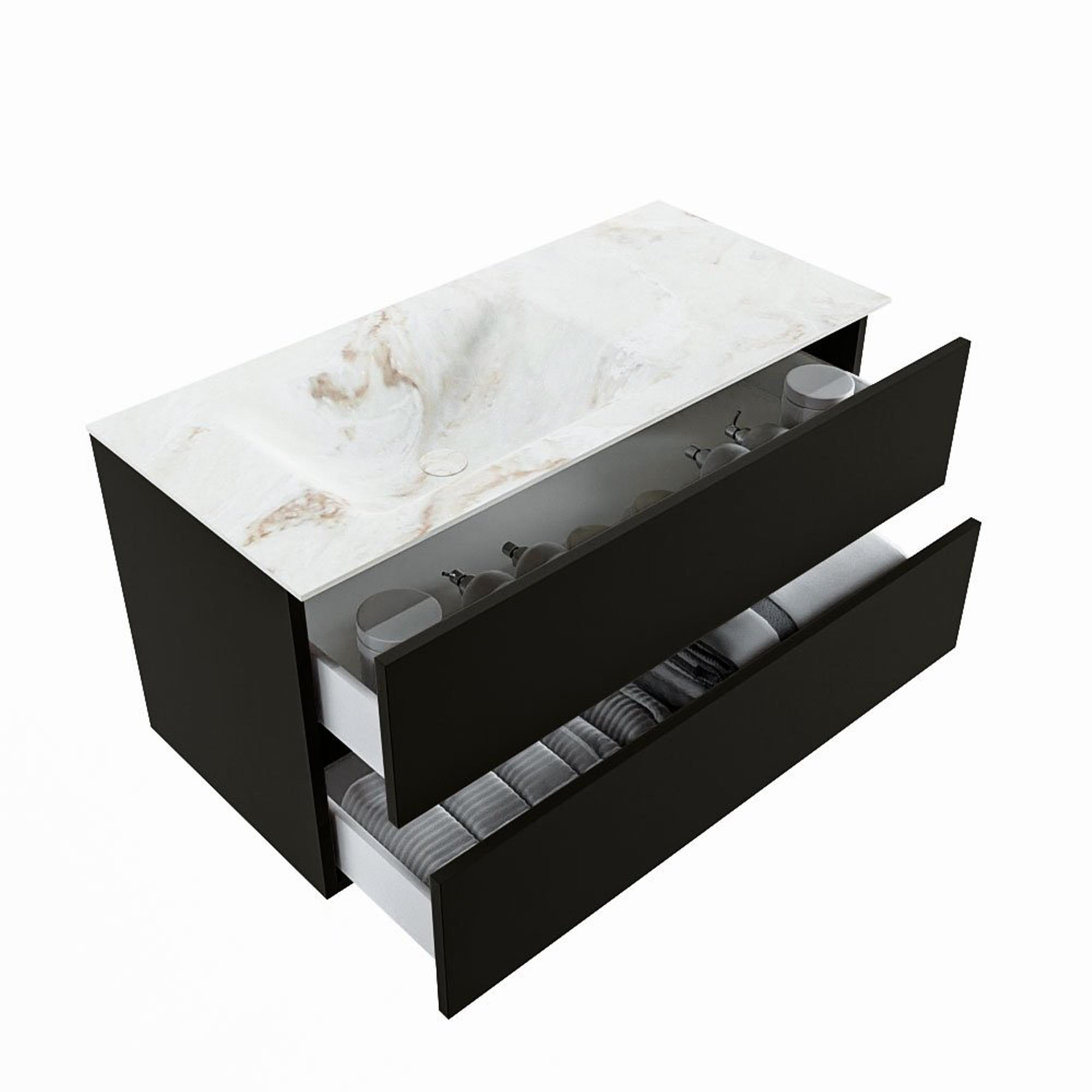 MONDIAZ VICA-DLUX Badkamermeubelset - 100cm - onderkast urban- 2 lades - inbouw wastafel cloud links - zonder kraangaten - 60cm hoge versie - frape