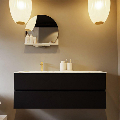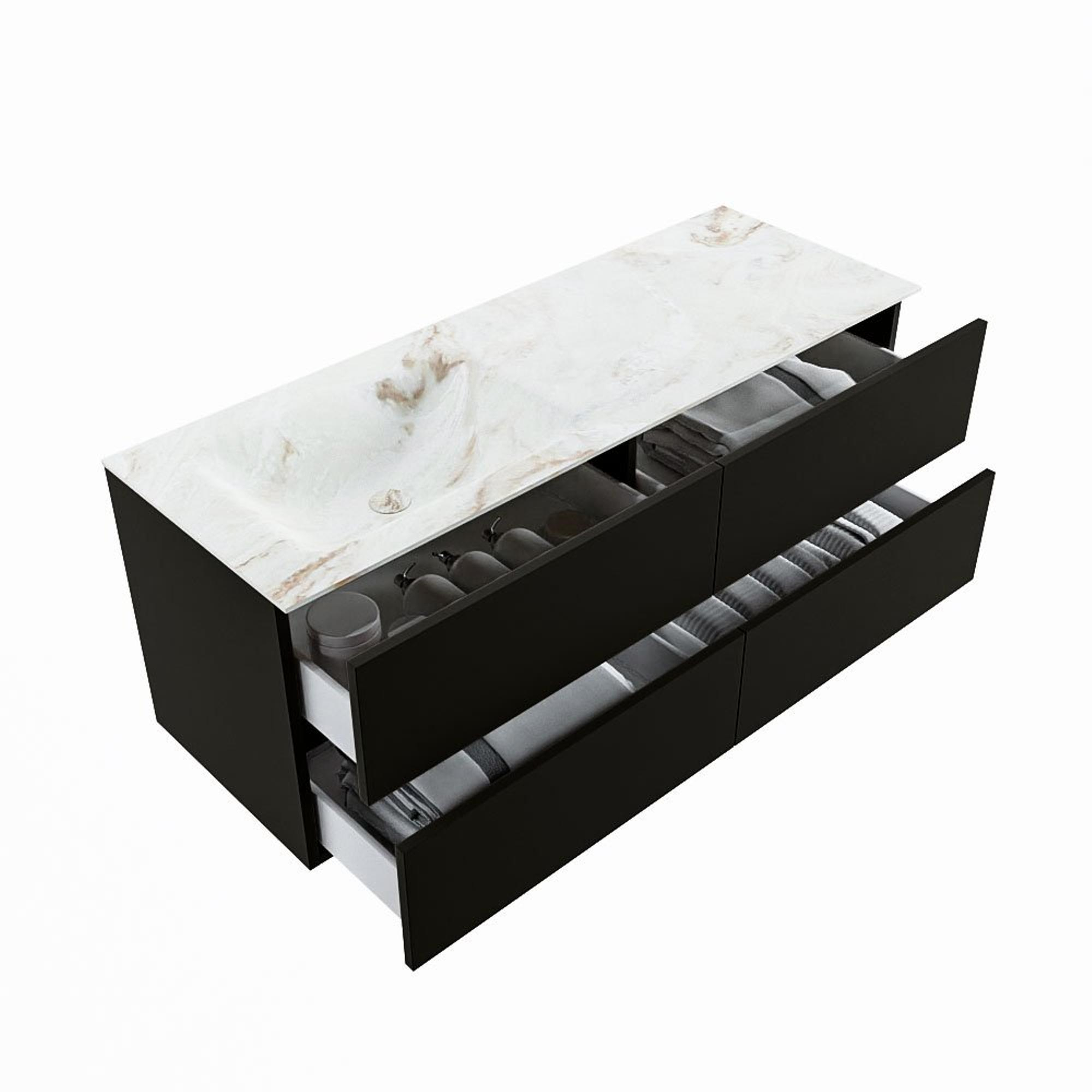 MONDIAZ VICA-DLUX Badkamermeubelset - 130cm - onderkast urban - 4 lades - inbouw wastafel cloud links - 1 kraangat - 60cm hoge versie - frape