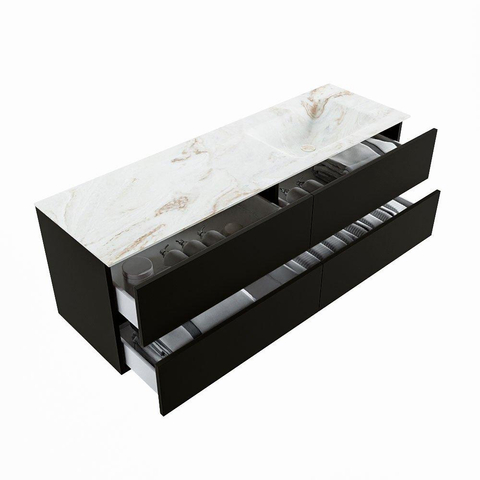 MONDIAZ VICA-DLUX Badkamermeubelset - 150cm - onderkast urban - 4 lades - inbouw wastafel cloud rechts - zonder kraangaten - 60cm hoge versie - frape