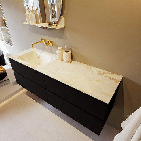 MONDIAZ VICA-DLUX Badkamermeubelset - 150cm - onderkast urban - 4 lades - inbouw wastafel cloud links - zonder kraangaten - 60cm hoge versie - frape