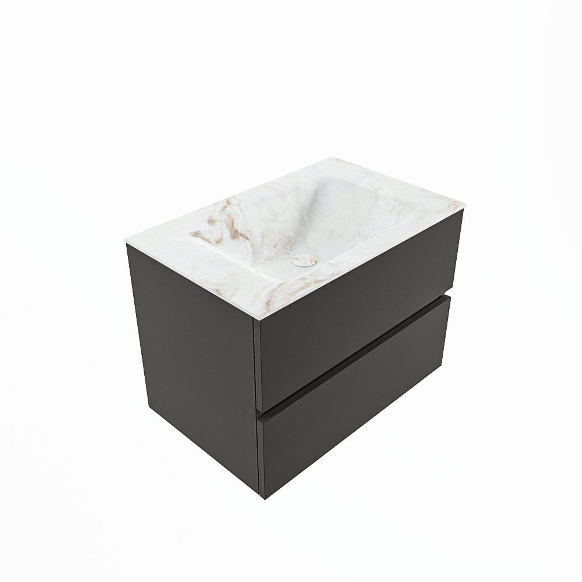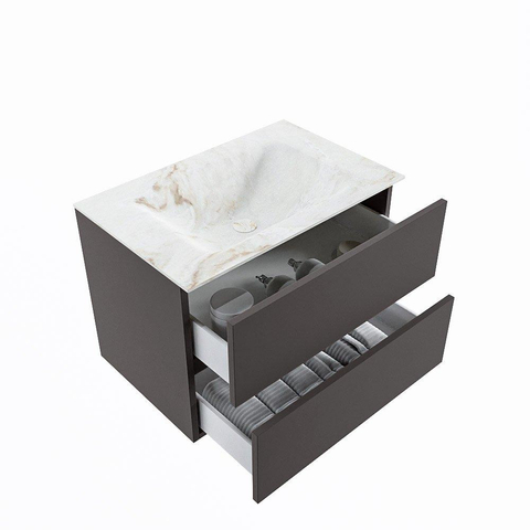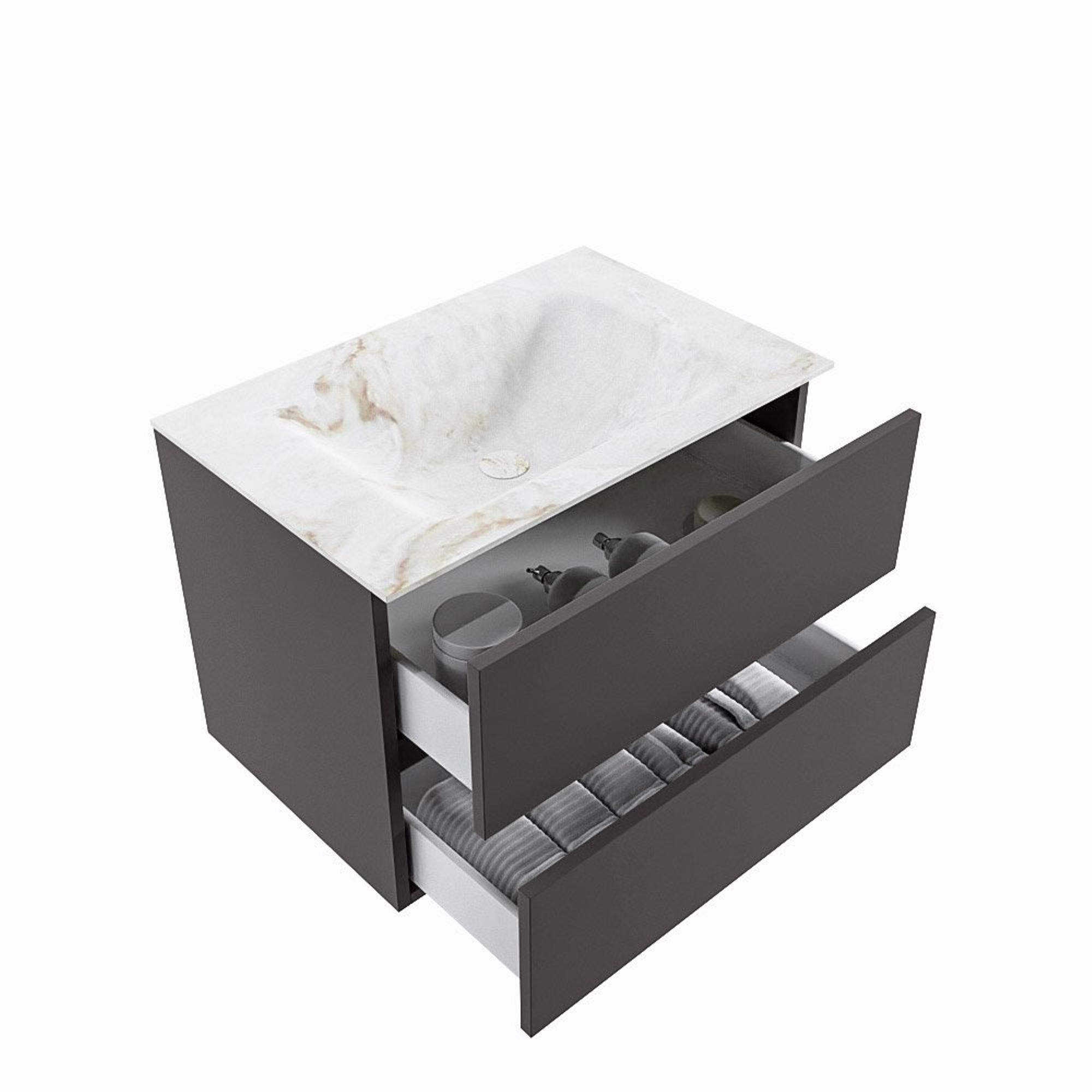 MONDIAZ VICA-DLUX Badkamermeubelset - 70cm - onderkast dark grey - 2 lades - inbouw wastafel cloud midden - zonder kraangaten - 60cm hoge versie - frape