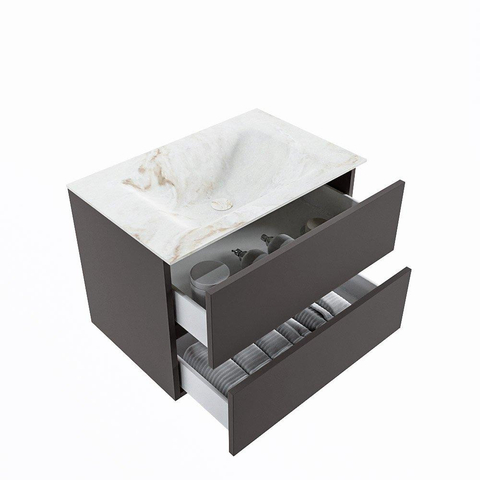 MONDIAZ VICA-DLUX Badkamermeubelset - 70cm - onderkast dark grey - 2 lades - inbouw wastafel cloud midden - 1 kraangat - 60cm hoge versie - frape