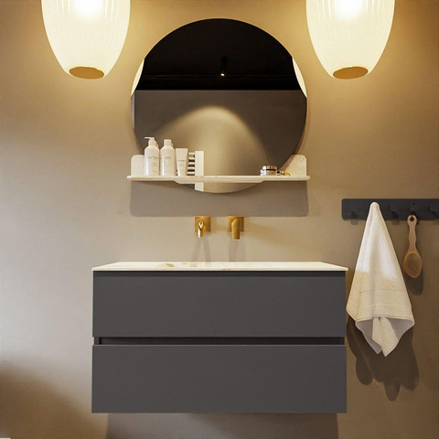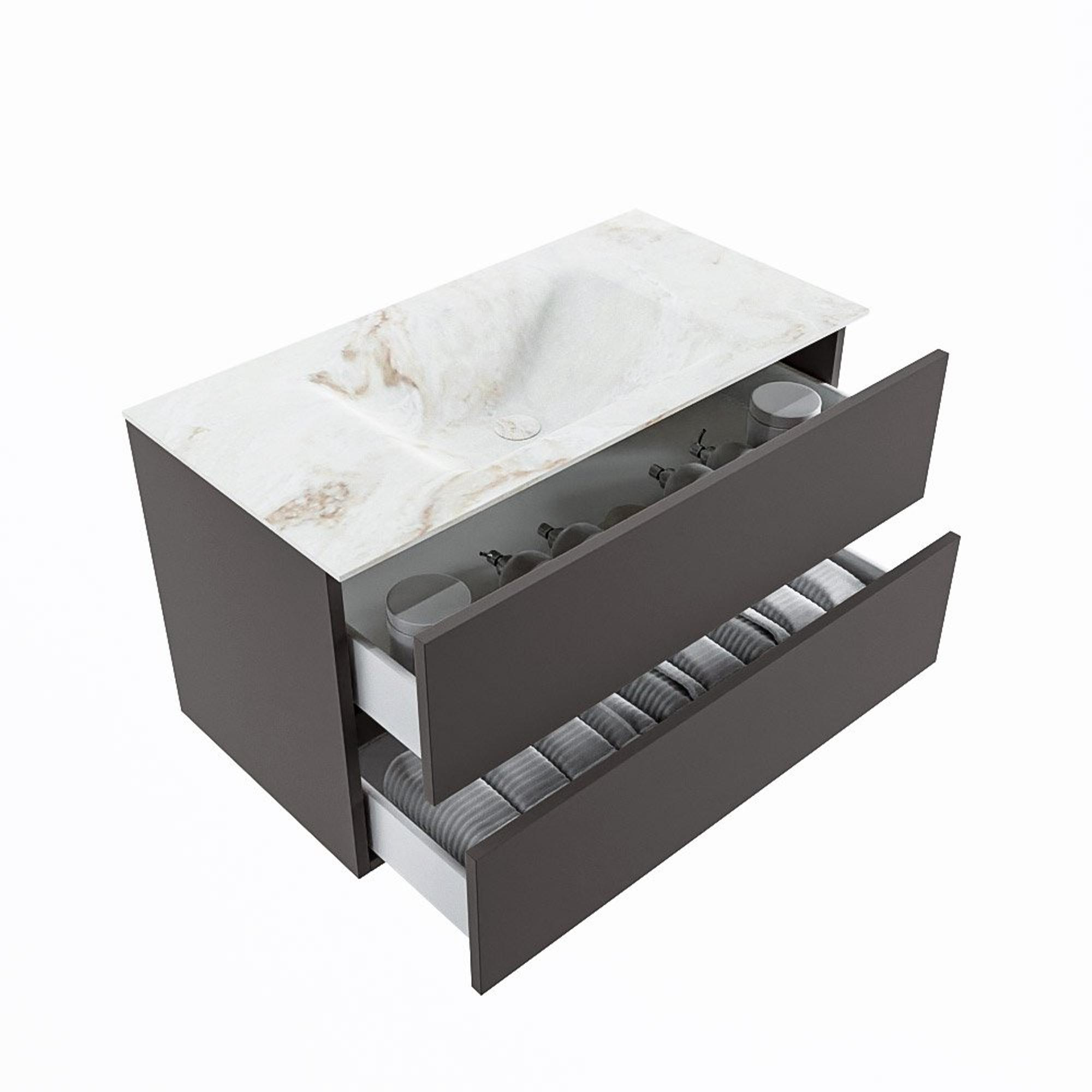 MONDIAZ VICA-DLUX Badkamermeubelset - 90cm - onderkast dark grey - 2 lades - inbouw wastafel cloud midden - zonder kraangaten - 60cm hoge versie - frape