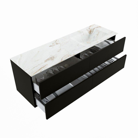 MONDIAZ VICA-DLUX Badkamermeubelset - 150cm - onderkast urban - 4 lades - inbouw wastafel cloud rechts - 1 kraangat - 60cm hoge versie - frape