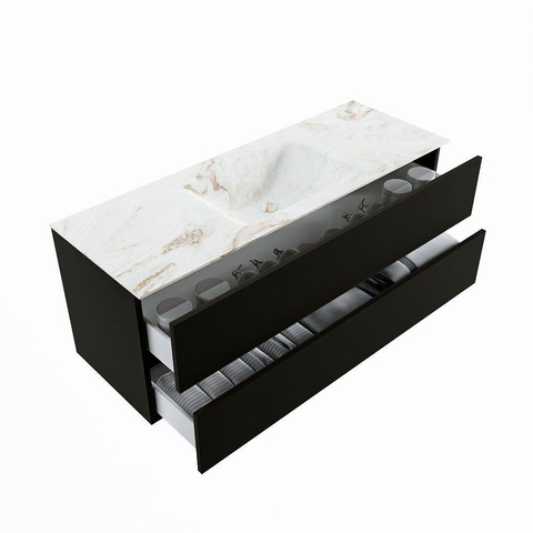 MONDIAZ VICA-DLUX Badkamermeubelset - 130cm - onderkast urban- 2 lades - inbouw wastafel cloud midden - 1 kraangat - 60cm hoge versie - frape