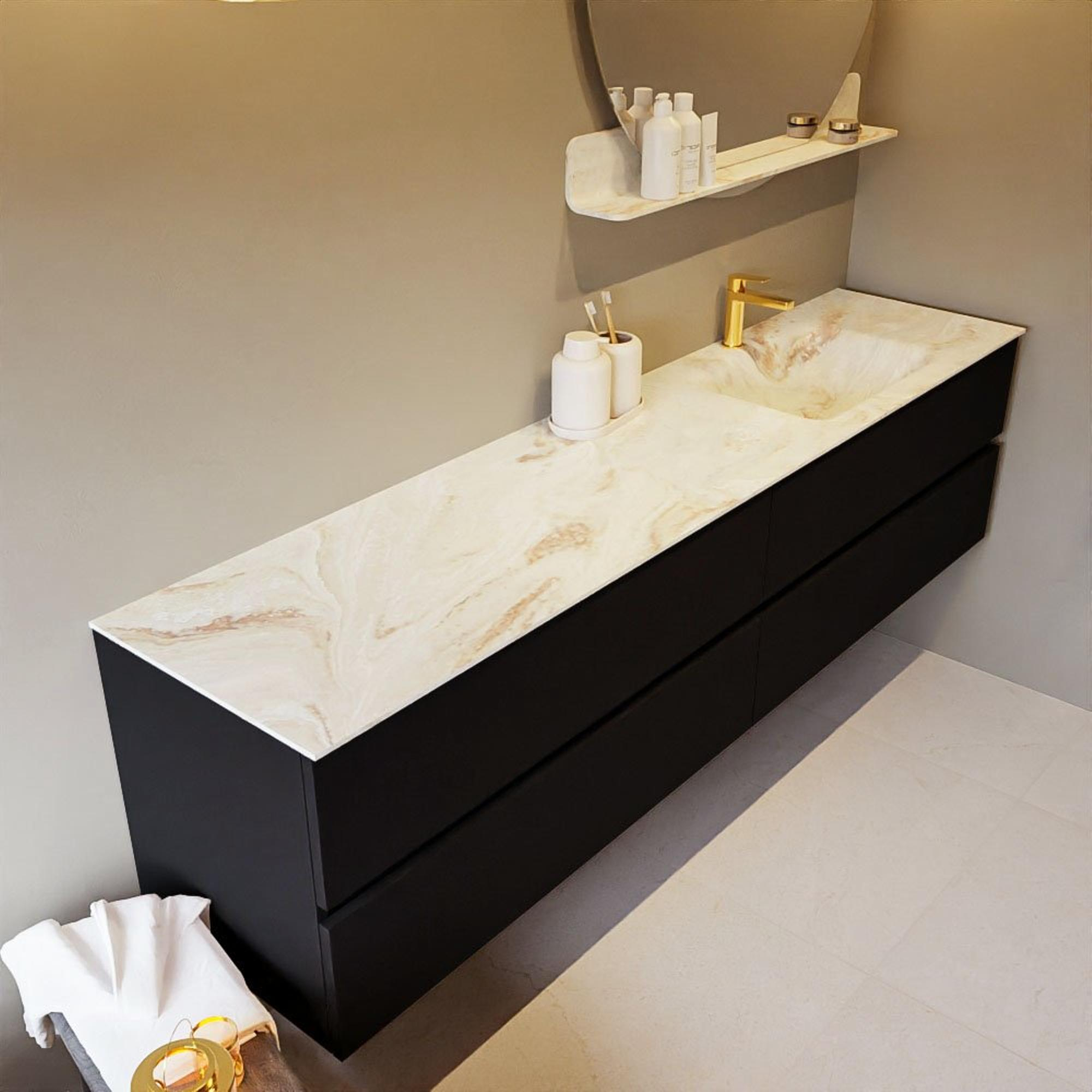 MONDIAZ VICA-DLUX Badkamermeubelset - 200cm - onderkast urban - 4 lades - inbouw wastafel cloud rechts - 1 kraangat - 60cm hoge versie - frape