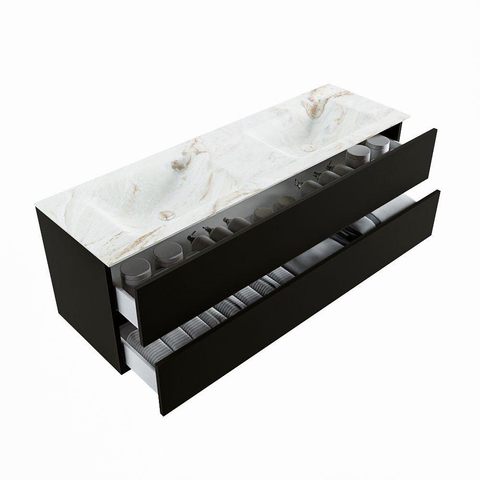 MONDIAZ VICA-DLUX Badkamermeubelset - 150cm - onderkast urban- 2 lades - inbouw wastafel cloud dubbel - zonder kraangaten - 60cm hoge versie - frape