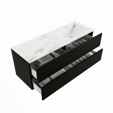 MONDIAZ VICA-DLUX Badkamermeubelset - 130cm - onderkast urban - 4 lades - inbouw wastafel cloud rechts - 1 kraangat - 60cm hoge versie - frape