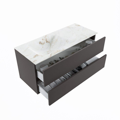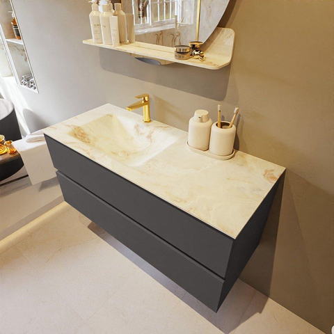 MONDIAZ VICA-DLUX Badkamermeubelset - 110cm - onderkast dark grey - 2 lades - inbouw wastafel cloud links - 1 kraangat - 60cm hoge versie - frape