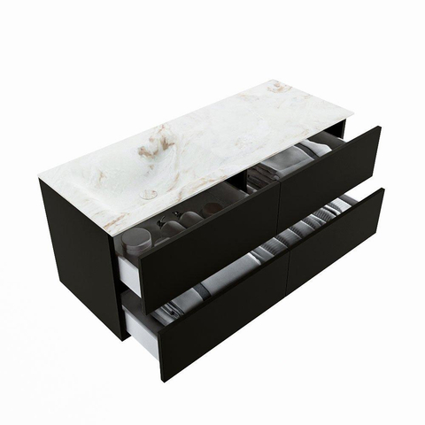 MONDIAZ VICA-DLUX Badkamermeubelset - 120cm - onderkast urban - 4 lades - inbouw wastafel cloud links - 1 kraangat - 60cm hoge versie - frape