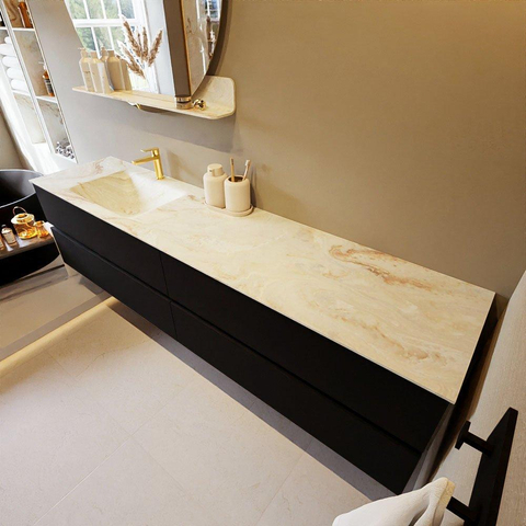 MONDIAZ VICA-DLUX Badkamermeubelset - 200cm - onderkast urban - 4 lades - inbouw wastafel cloud links - 1 kraangat - 60cm hoge versie - frape