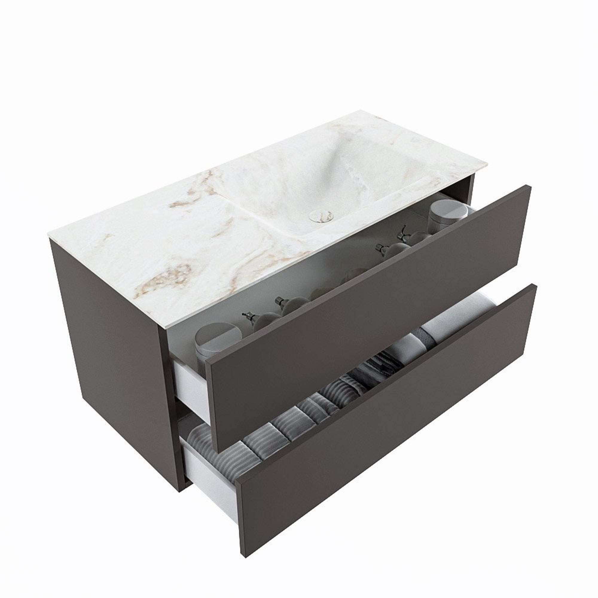 MONDIAZ VICA-DLUX Badkamermeubelset - 100cm - onderkast dark grey - 2 lades - inbouw wastafel cloud rechts - zonder kraangaten - 60cm hoge versie - frape