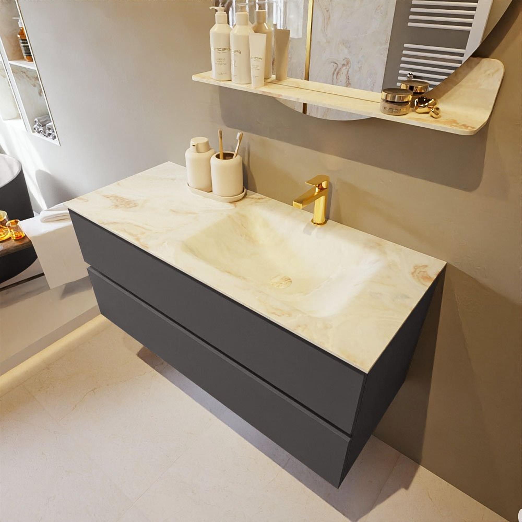 MONDIAZ VICA-DLUX Badkamermeubelset - 110cm - onderkast dark grey - 2 lades - inbouw wastafel cloud rechts - 1 kraangat - 60cm hoge versie - frape