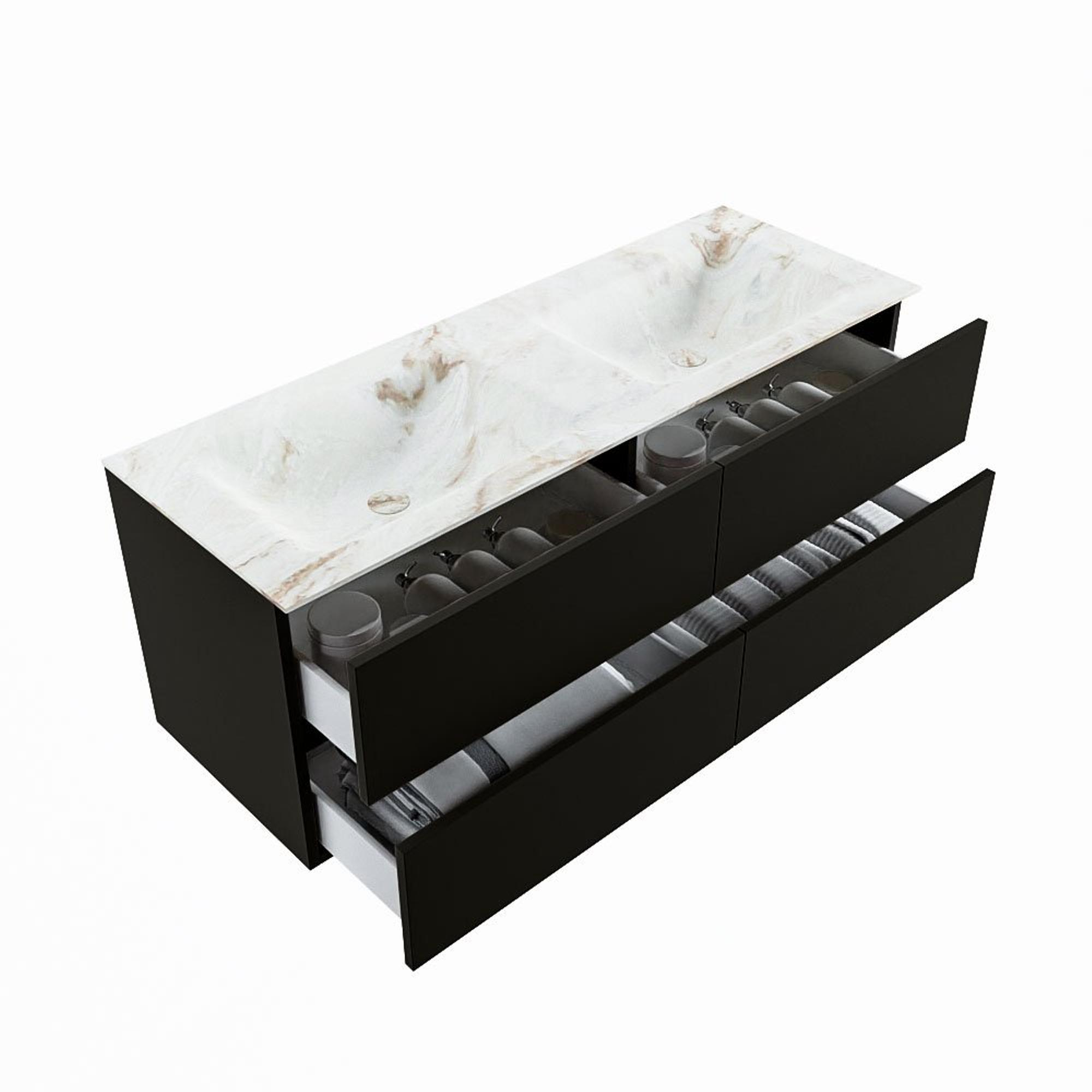MONDIAZ VICA-DLUX Badkamermeubelset - 130cm - onderkast urban - 4 lades - inbouw wastafel cloud dubbel - 2 kraangaten - 60cm hoge versie - frape