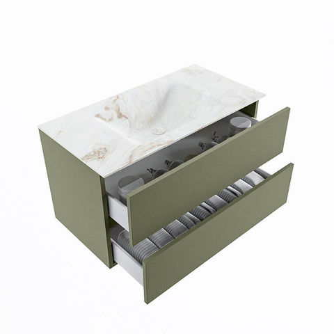 MONDIAZ VICA-DLUX Badkamermeubelset - 90cm - onderkast army- 2 lades - inbouw wastafel cloud midden - 1 kraangat - 60cm hoge versie - frape