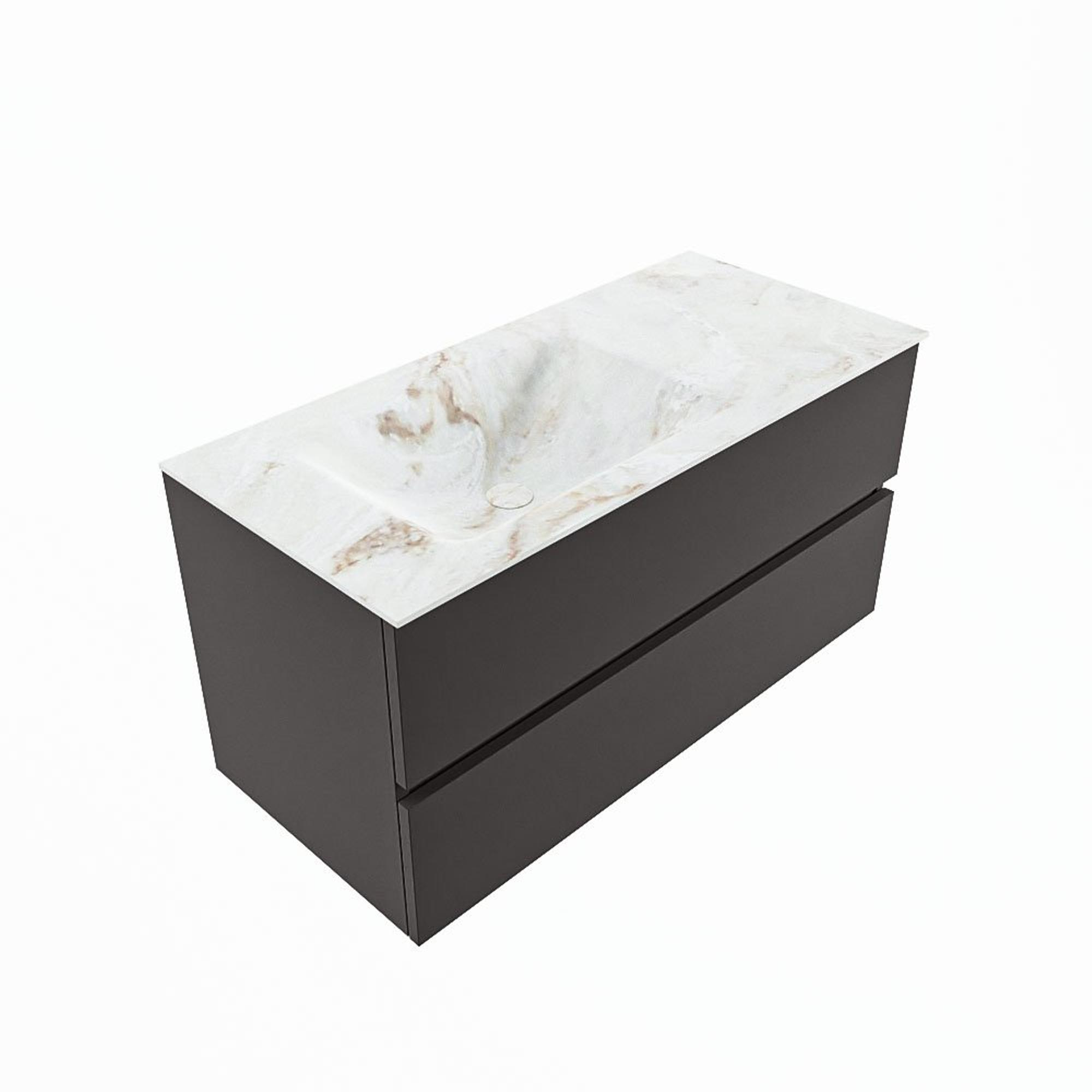 MONDIAZ VICA-DLUX Badkamermeubelset - 100cm - onderkast dark grey - 2 lades - inbouw wastafel cloud links - zonder kraangaten - 60cm hoge versie - frape