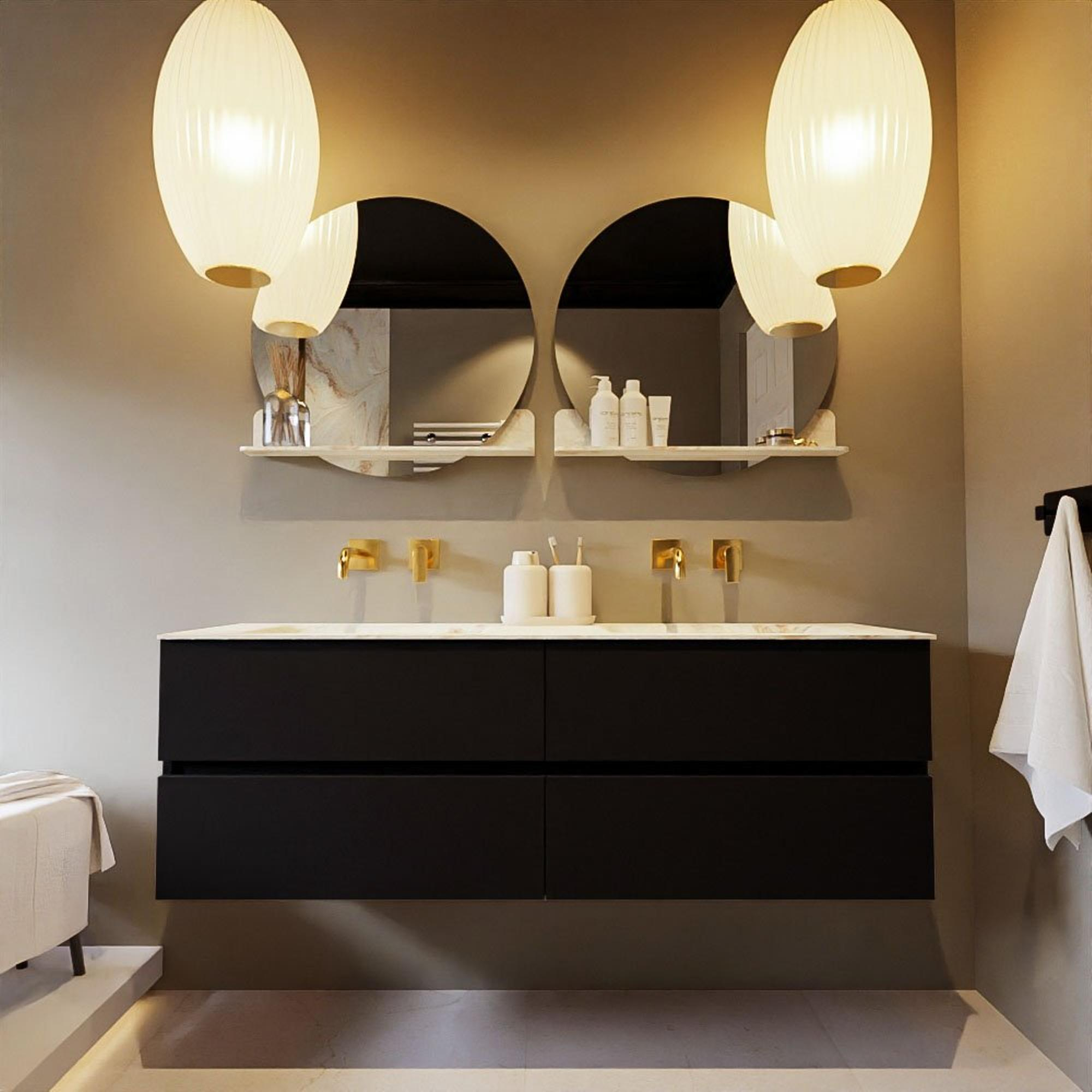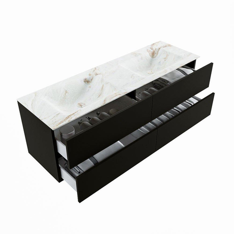 MONDIAZ VICA-DLUX Badkamermeubelset - 150cm - onderkast urban - 4 lades - inbouw wastafel cloud dubbel - zonder kraangaten - 60cm hoge versie - frape