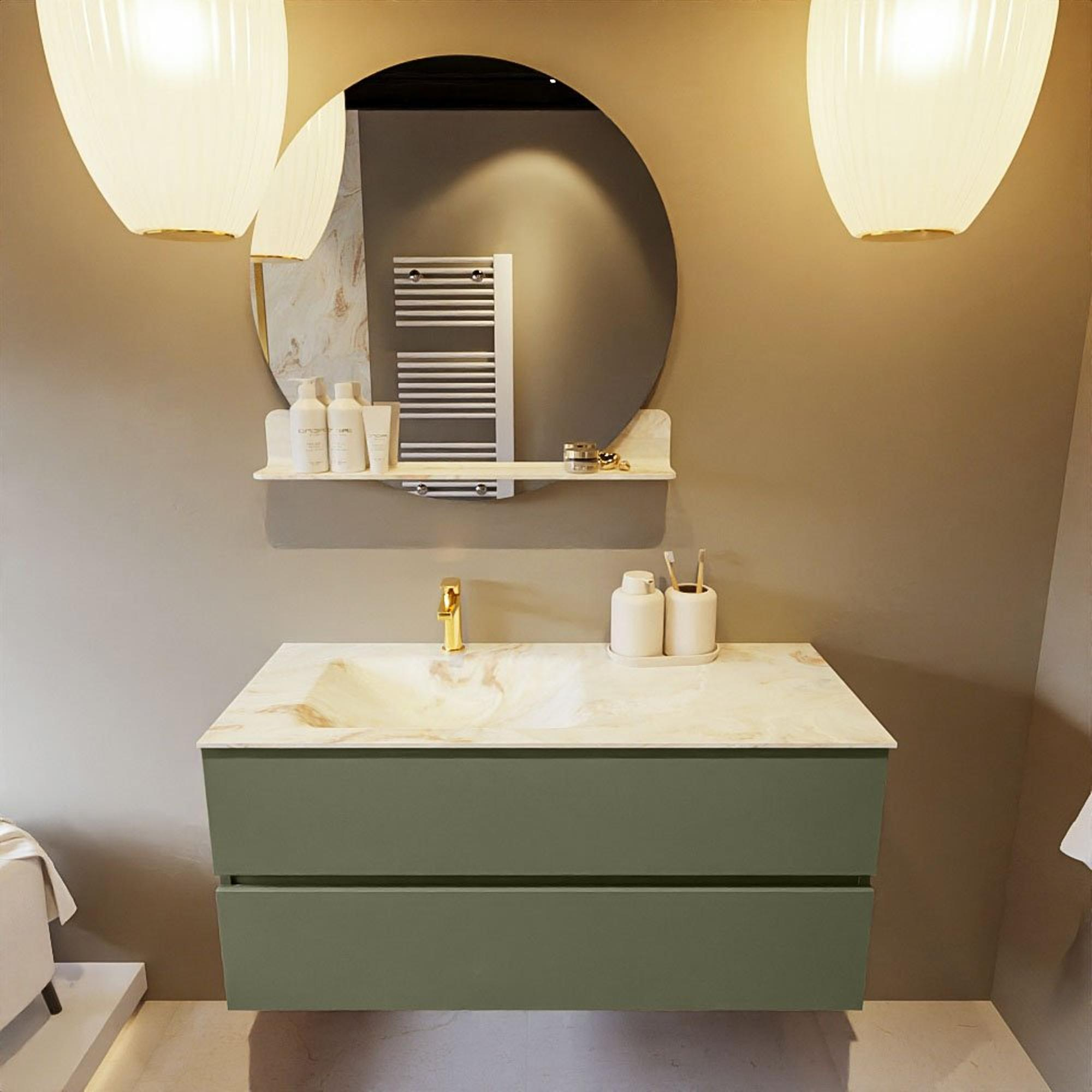 MONDIAZ VICA-DLUX Badkamermeubelset - 110cm - onderkast army- 2 lades - inbouw wastafel cloud links - 1 kraangat - 60cm hoge versie - frape