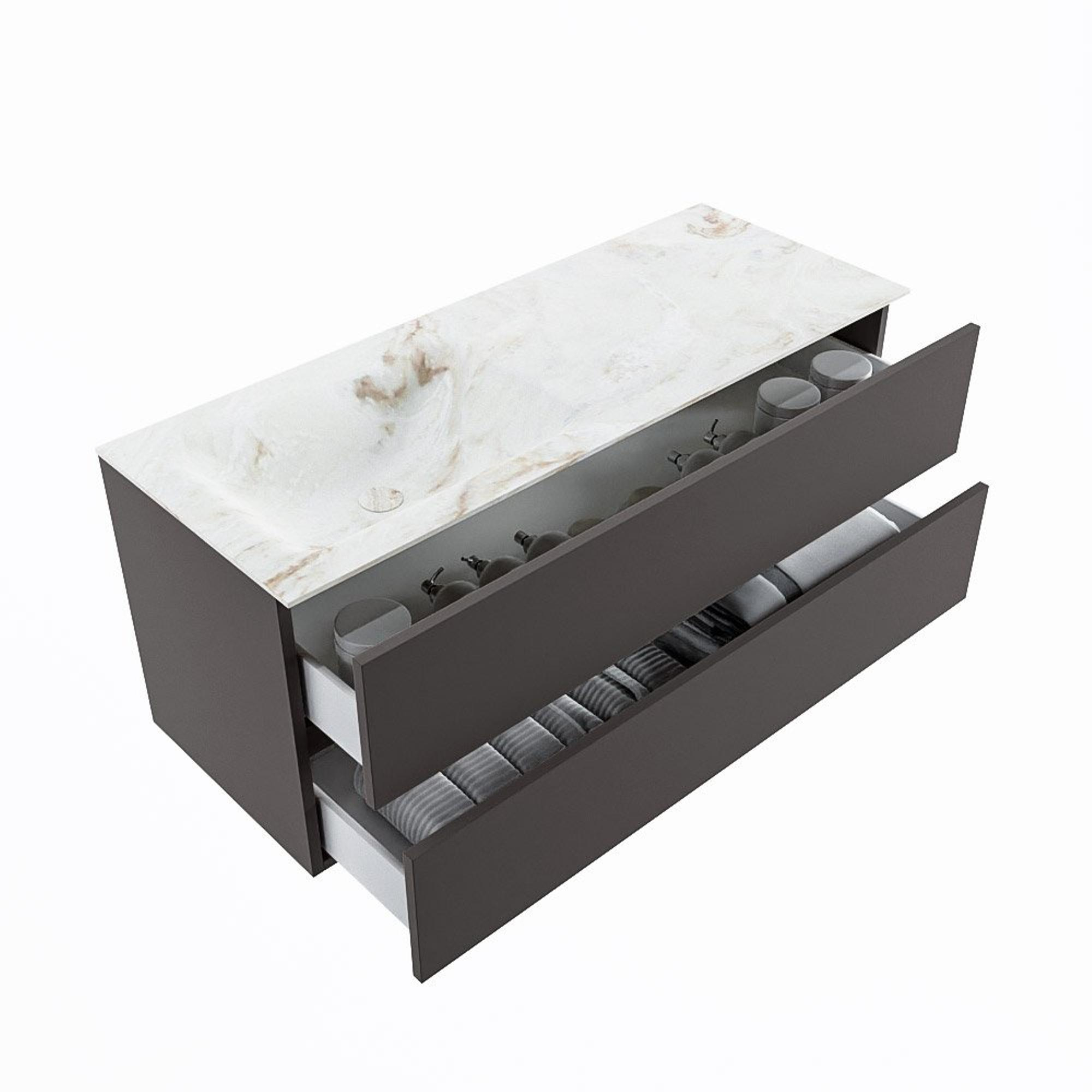 MONDIAZ VICA-DLUX Badkamermeubelset - 120cm - onderkast dark grey - 2 lades - inbouw wastafel cloud links - 1 kraangat - 60cm hoge versie - frape