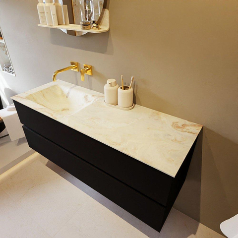 MONDIAZ VICA-DLUX Badkamermeubelset - 130cm - onderkast urban- 2 lades - inbouw wastafel cloud links - zonder kraangaten - 60cm hoge versie - frape