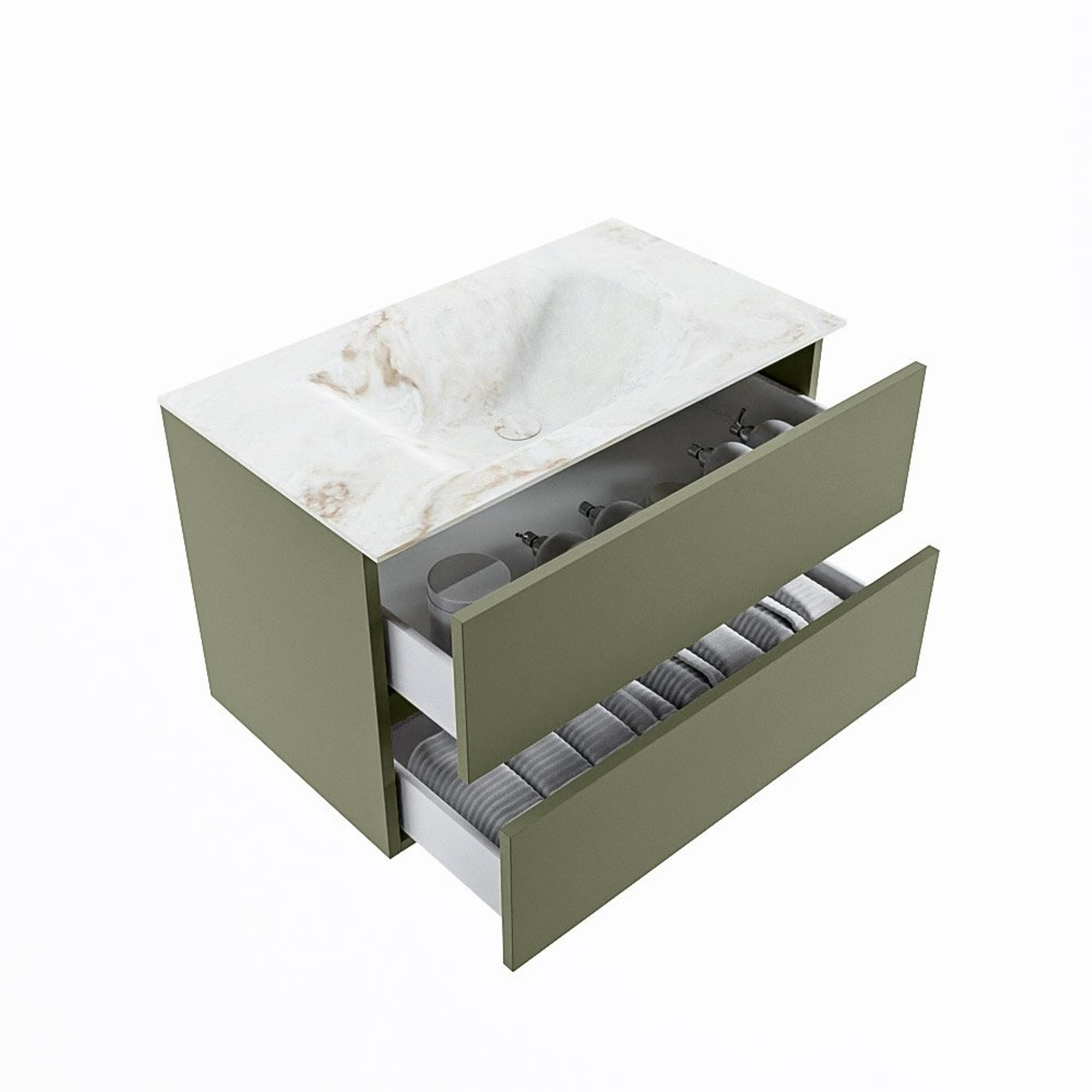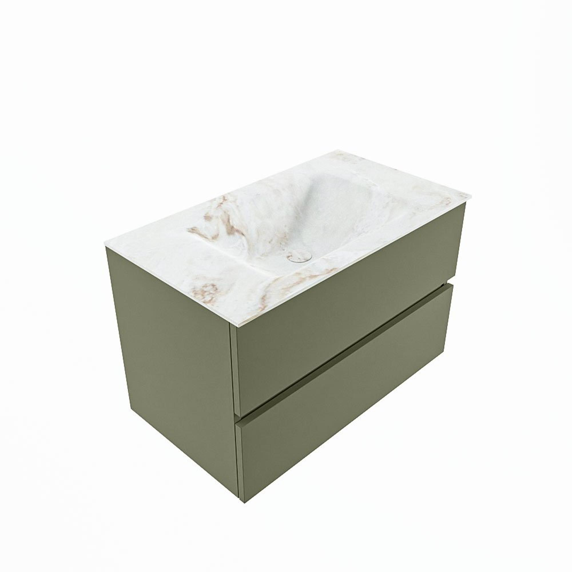 MONDIAZ VICA-DLUX Badkamermeubelset - 80cm - onderkast army- 2 lades - inbouw wastafel cloud midden - 1 kraangat - 60cm hoge versie - frape
