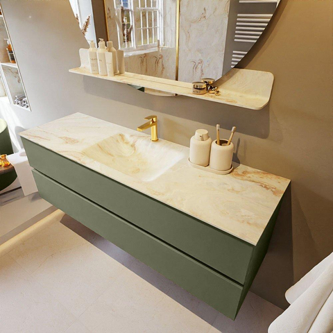 MONDIAZ VICA-DLUX Badkamermeubelset - 150cm - onderkast army- 2 lades - inbouw wastafel cloud midden - 1 kraangat - 60cm hoge versie - frape