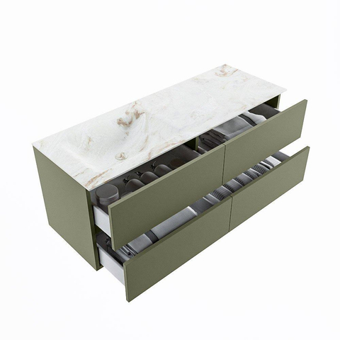 MONDIAZ VICA-DLUX Badkamermeubelset - 130cm - onderkast army - 4 lades - inbouw wastafel cloud links - 1 kraangat - 60cm hoge versie - frape