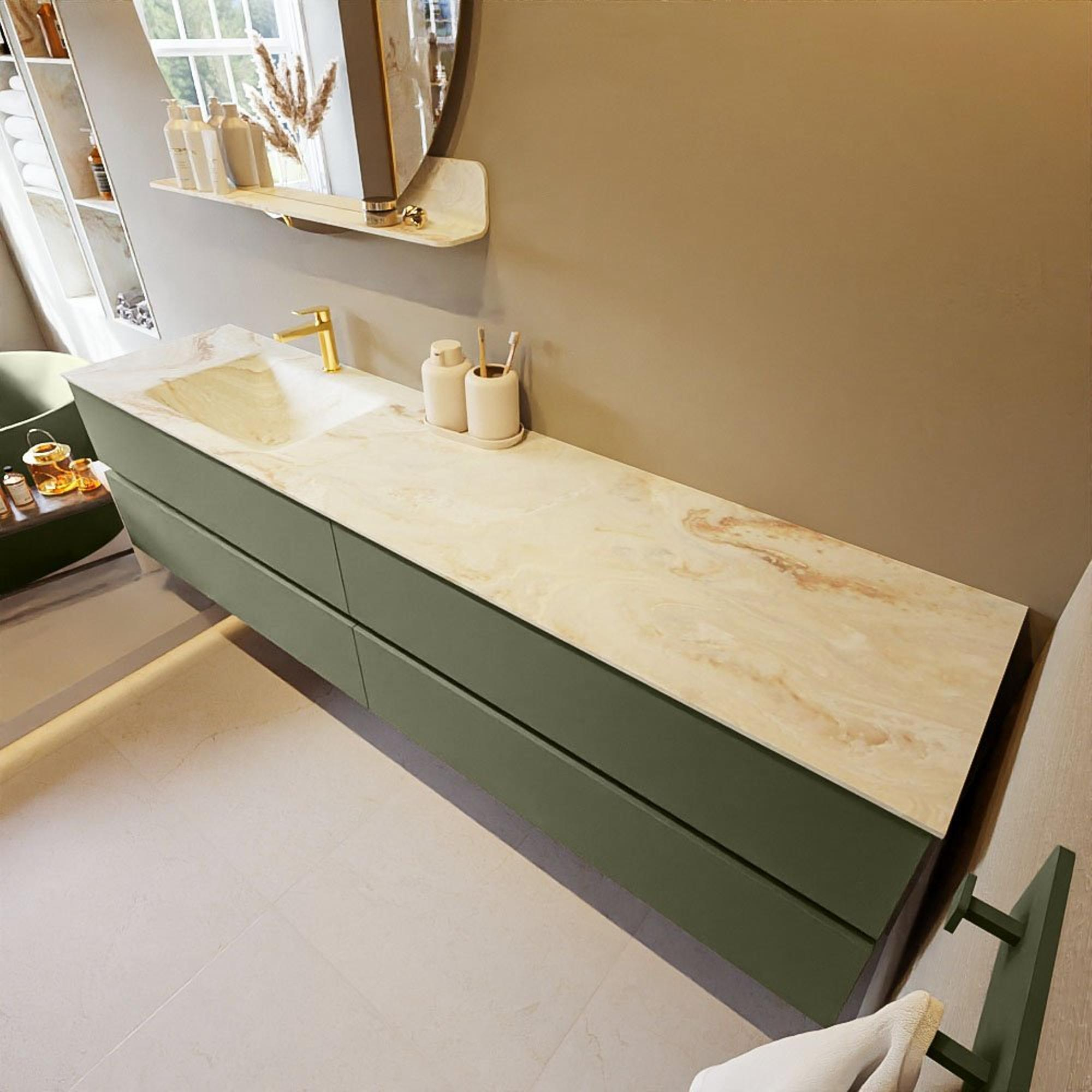 MONDIAZ VICA-DLUX Badkamermeubelset - 200cm - onderkast army - 4 lades - inbouw wastafel cloud links - 1 kraangat - 60cm hoge versie - frape