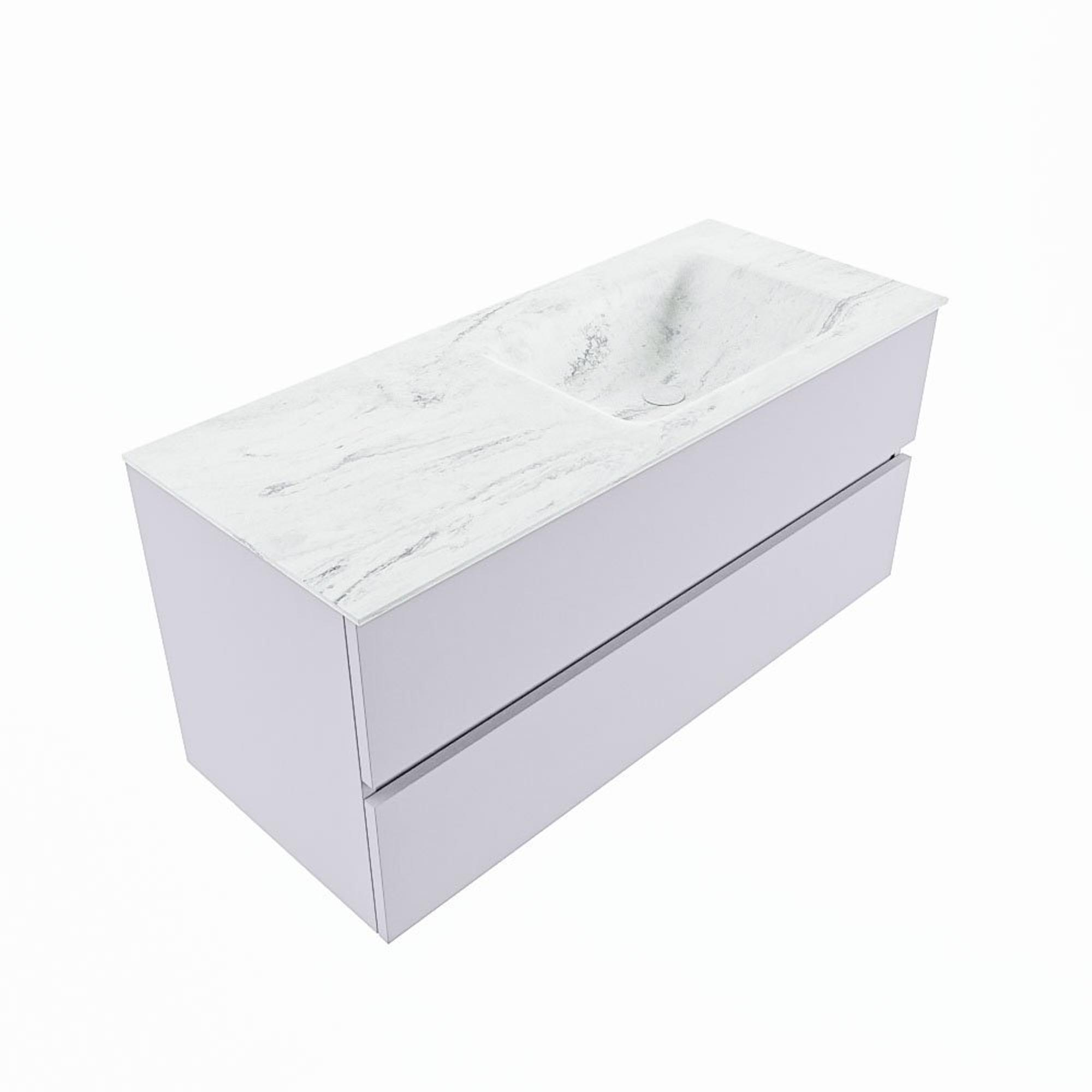MONDIAZ VICA-DLUX Badkamermeubelset - 110cm - onderkast cale- 2 lades - inbouw wastafel cloud rechts - zonder kraangaten - 60cm hoge versie - opalo