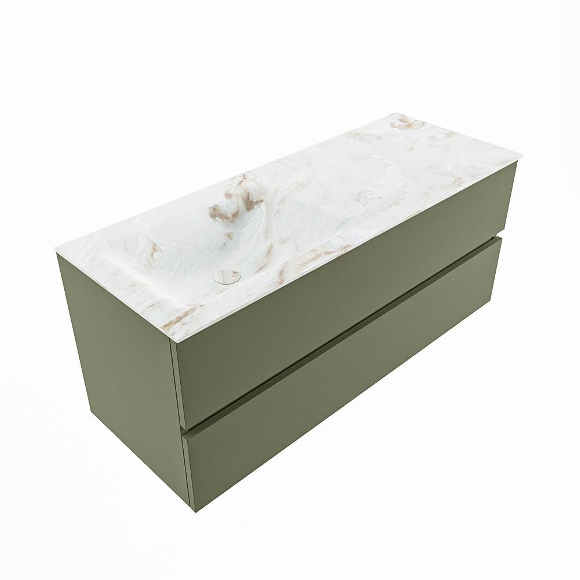 MONDIAZ VICA-DLUX Badkamermeubelset - 120cm - onderkast army- 2 lades - inbouw wastafel cloud links - zonder kraangaten - 60cm hoge versie - frape