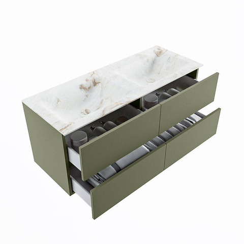 MONDIAZ VICA-DLUX Badkamermeubelset - 120cm - onderkast army - 4 lades - inbouw wastafel cloud dubbel - 2 kraangaten - 60cm hoge versie - frape
