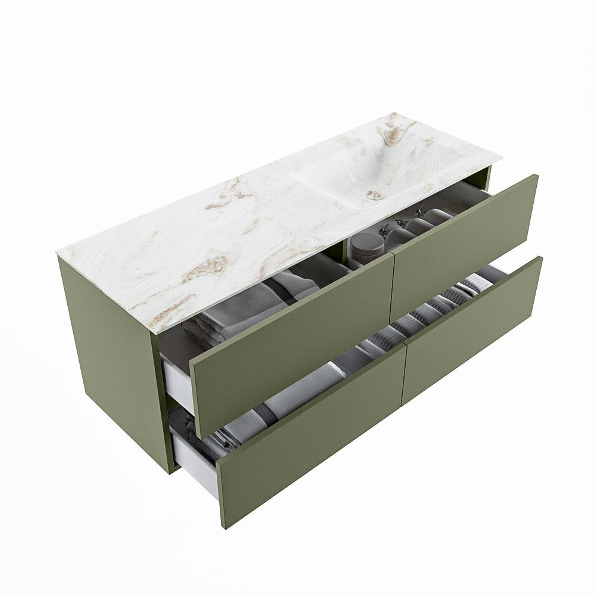MONDIAZ VICA-DLUX Badkamermeubelset - 130cm - onderkast army - 4 lades - inbouw wastafel cloud rechts - zonder kraangaten - 60cm hoge versie - frape
