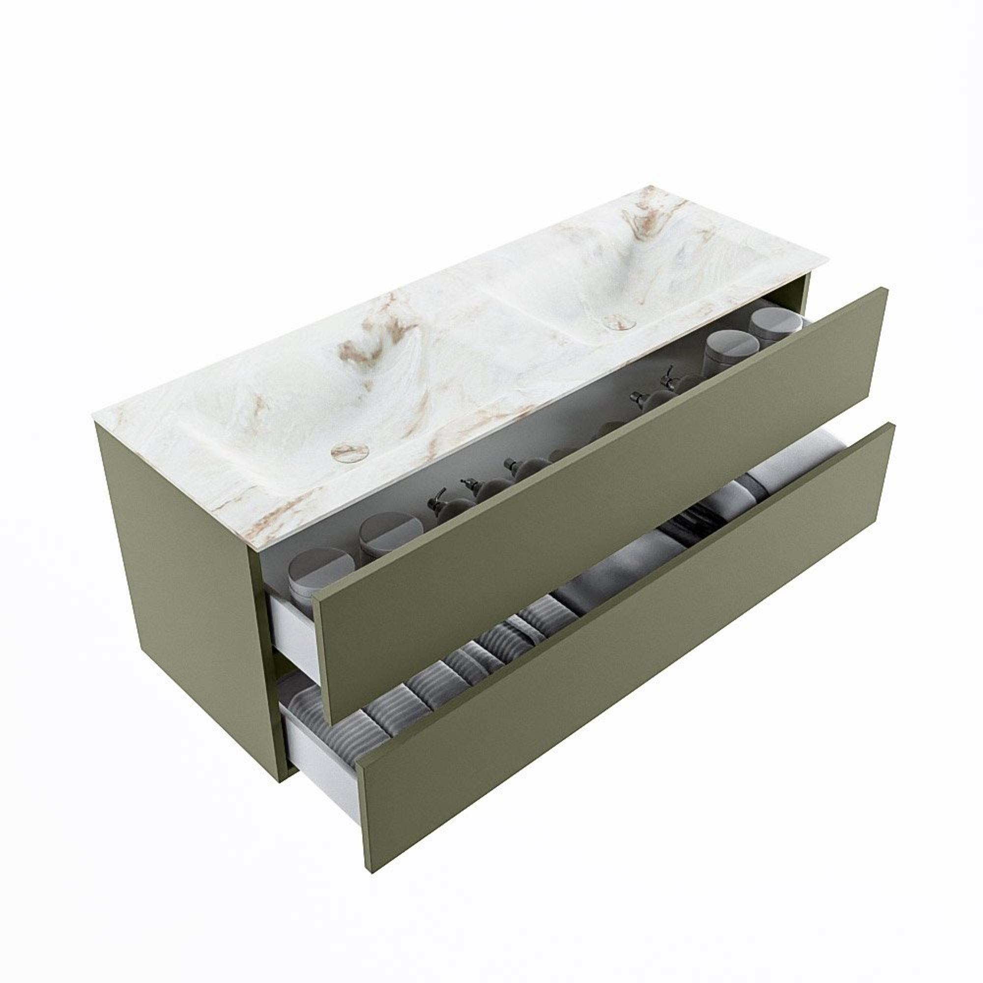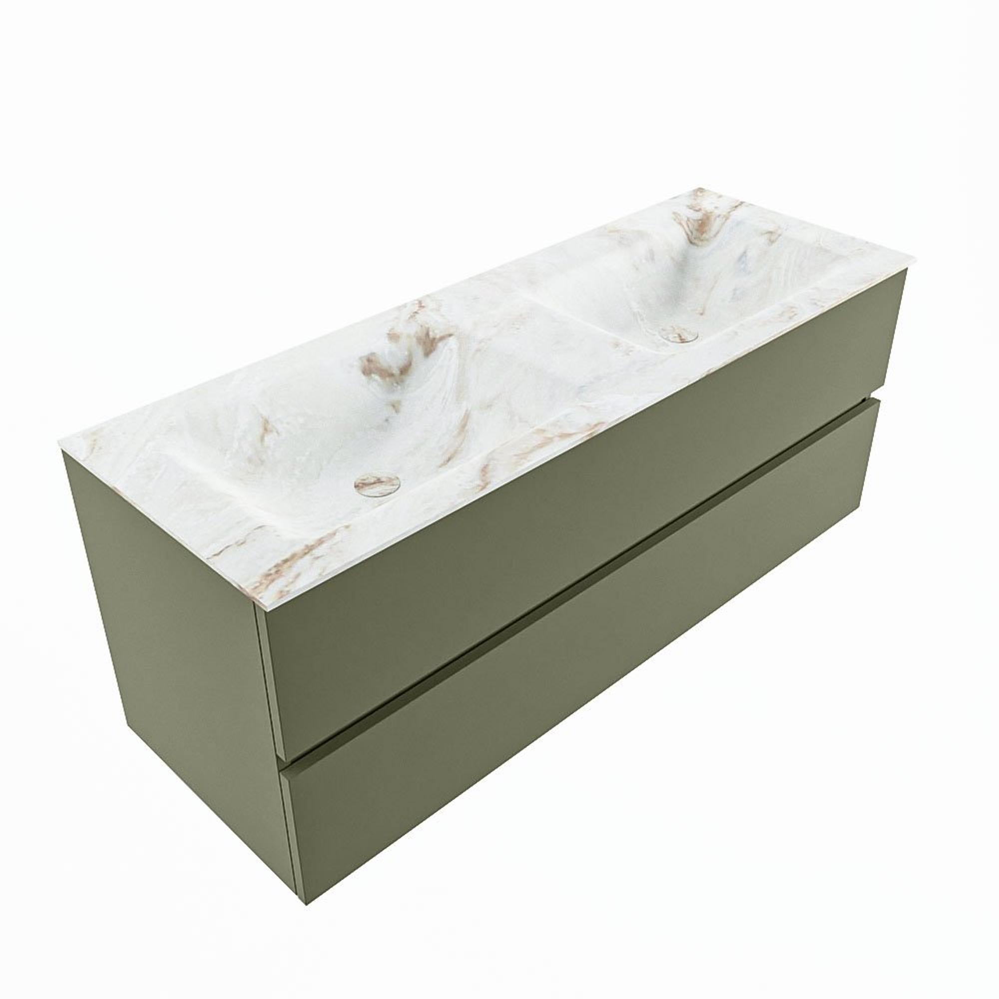 MONDIAZ VICA-DLUX Badkamermeubelset - 130cm - onderkast army- 2 lades - inbouw wastafel cloud dubbel - 2 kraangaten - 60cm hoge versie - frape