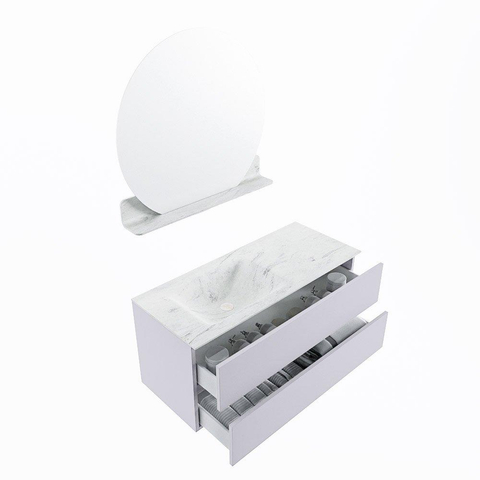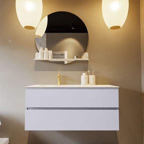MONDIAZ VICA-DLUX Badkamermeubelset - 110cm - onderkast cale- 2 lades - inbouw wastafel cloud links - 1 kraangat - 60cm hoge versie - opalo