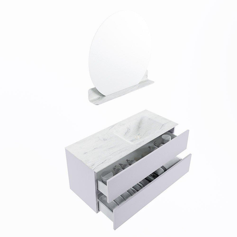 MONDIAZ VICA-DLUX Badkamermeubelset - 110cm - onderkast cale- 2 lades - inbouw wastafel cloud rechts - 1 kraangat - 60cm hoge versie - opalo