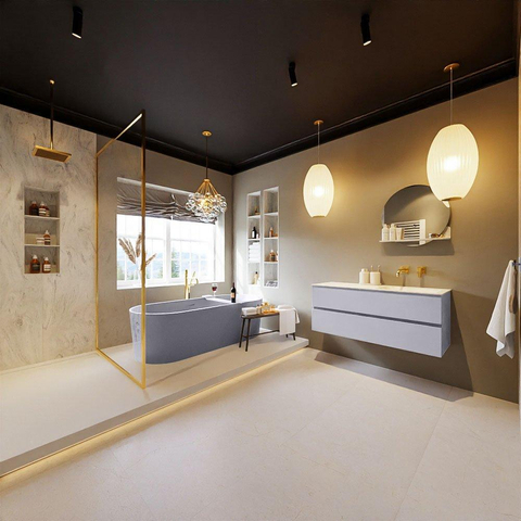 De buitengewone mooie badmeubel set VICA DLUX is een schitterend pronkstuk in uw badkamer. De gemarmerde Solid surface wastafel van CORIAN heeft een fraaie en tijdloze uitstraling. Door de zachte en natuurlijke vorm van de wastafel, gecombineerd met de tijdloze en prachtige badmeubel onderkast past de VICA-DLUX goed bij de diverse stijlen badkamers. Om uw badkamer compleet te af te stijlen hebben wij ook de nissen en spiegelhouders in dezelfde kleur als de wastafel. Zoals de Mondiaz nissen en spiegel planchetten. De serie VICA DLUX bestaat uit de 2 of 4 laden onderkast VICA gecombineerd met een CORIAN Solid surface wastafel met marmer structuur. De Solid surface CORIAN wastafel is in 5 marmer looks verkrijgbaar. Met deze badkamermeubel set heeft u wel die mooie marmeren uitstraling maar tevens ook het gemak en de hygiëne van Solid surface. Let op: U ziet bij de XL (60cm) variant de afbeeldingen/video's van de standaard hoogte (50cm)