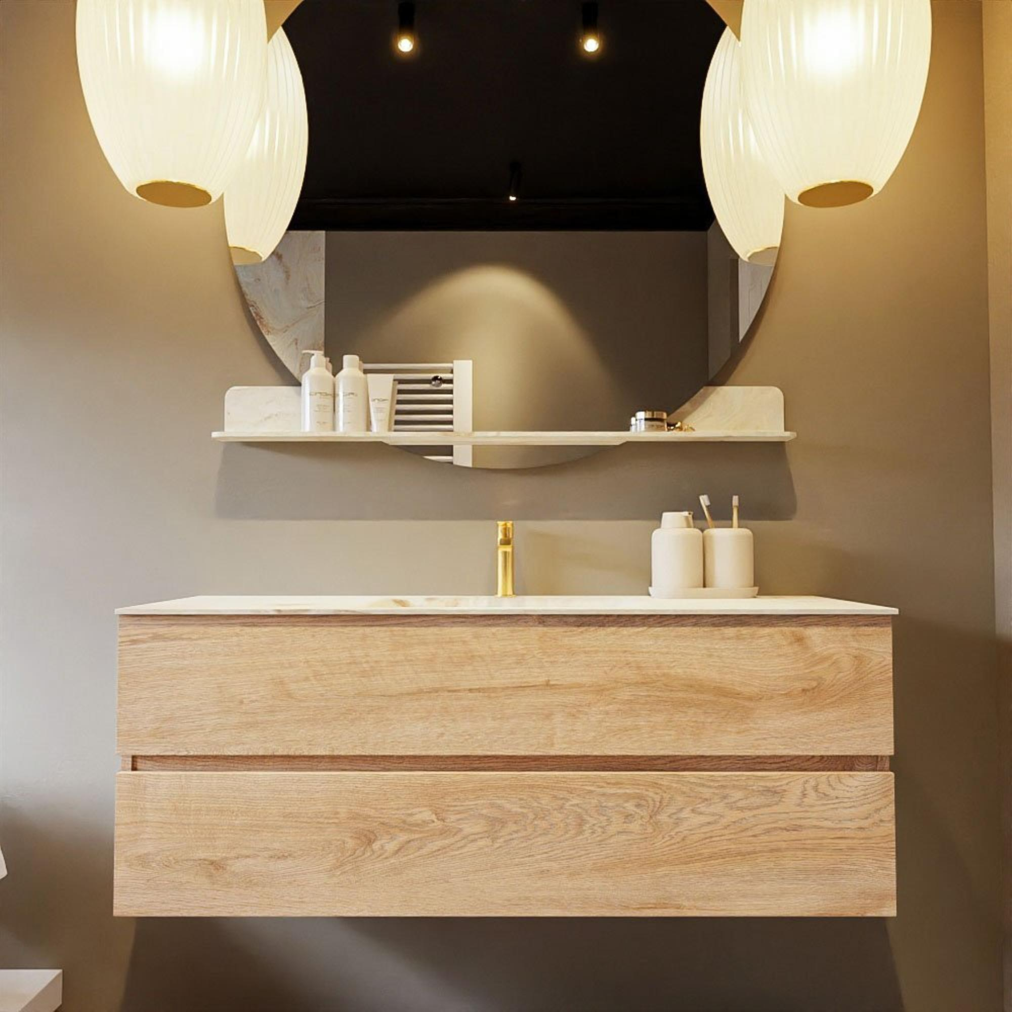 MONDIAZ VICA-DLUX Badkamermeubelset - 130cm - onderkast washed oak - 2 lades - inbouw wastafel cloud midden - 1 kraangat - 60cm hoge versie - frape